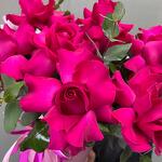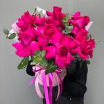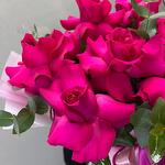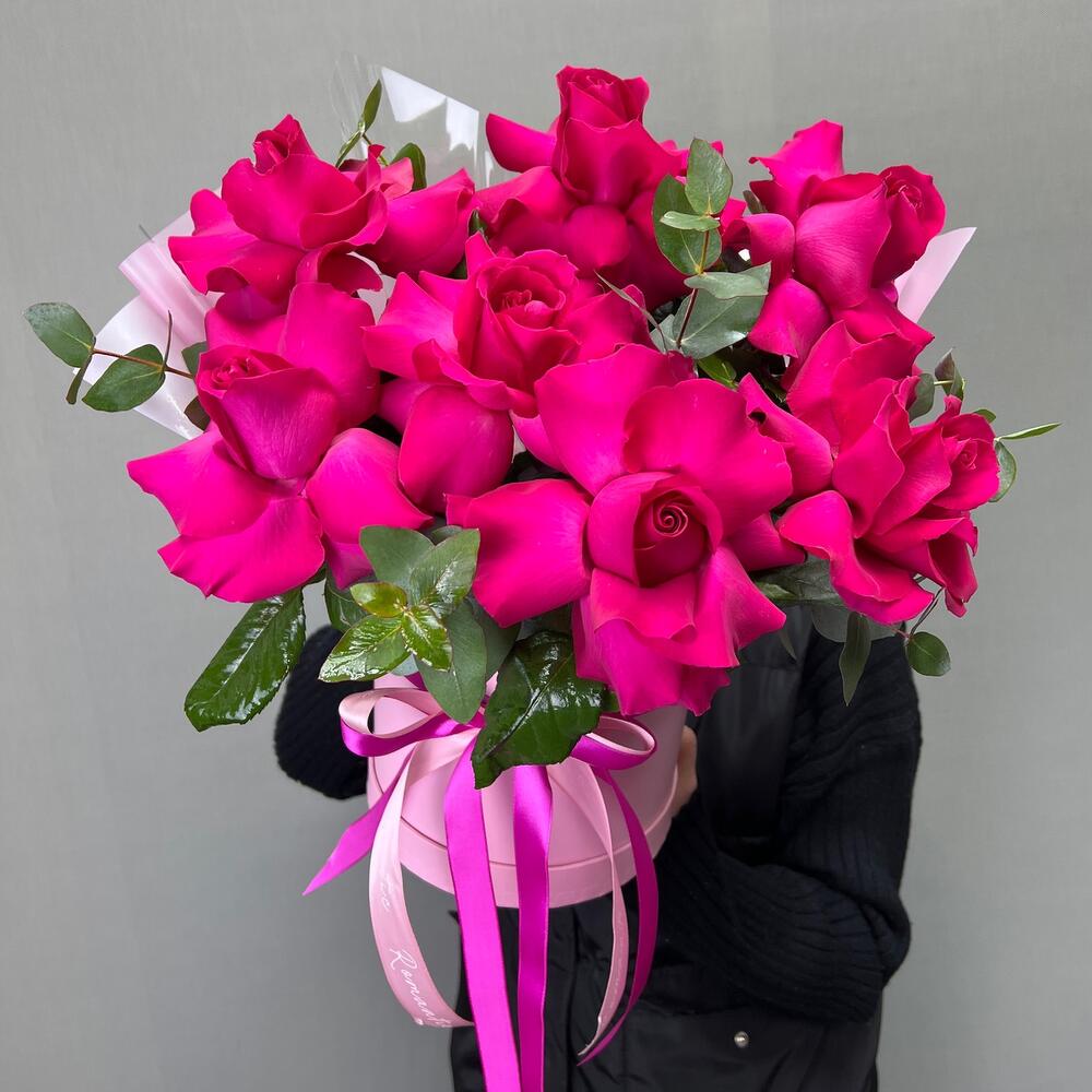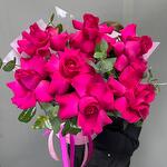Eukaliptusz - 3 db. Коробка шляпная - 1 db. A Francia Rózsa - 7 db. Оазис флористический - 1 db.
