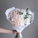Нежнейший букет в пастельных тонах с гортензией и диантусом. Гортензия очень любит воду, не оставляйте её срез без воды ни на минуту. Срез гортензии следует расщепить на четыре части. Для вашего удобства все наши букеты доставляются в воде! Не забудьте подрезать цветы НЕПОСРЕДСТВЕННО перед тем как ставить в вазу (после подрезки в течении 2-3 секунд поставьте в воду). Не храните букет на прямых солнечных лучах и возле отопительных приборов, чтобы сохранить цветы свежими как можно дольше.