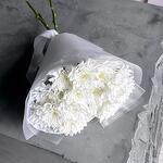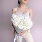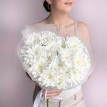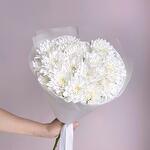 Нежный букет комплимент из белой кустовой хризантемы. Этот цветок очень стойкий и будет долго радовать своей красотой :) Не забудьте подрезать цветы непосредственно перед тем как ставить в вазу (после подрезки в течении 2-3 секунд поставьте в воду). Не храните букет на прямых солнечных лучах и возле отопительных приборов, чтобы сохранить цветы свежими как можно дольше.