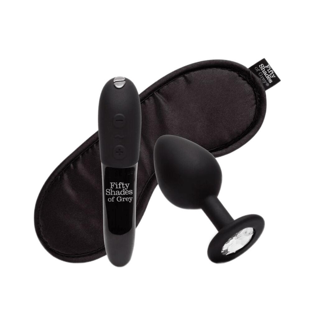 Внутри набора вы найдете две игрушки для удовольствия: вибратор премиум-класса We-Vibe Tango X и изящную анальную пробку из гладкого черного силикона, украшенную стильным кристаллом, а также дразнящую повязку на глаза, которая добавит нотку таинственности вашему опыту. Характеристики We-Vibe Tango X: Материал: Силикон, АБС-пластик Время зарядки: 90 минут Водонепроницаемость: 100% водонепроницаемость (IPX7) Размеры изделия: 10 х 2,3 х 2,4 см. Характеристики анальной пробки: Материал: Силикон, акрил Размеры изделия: 8 х 3,5 х 3,5 см (длина для вставки: 7,5 см) Характеристики атласной маски: Материал: 100% полиэстер Размеры изделия: 19,5*7,3*1 см