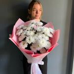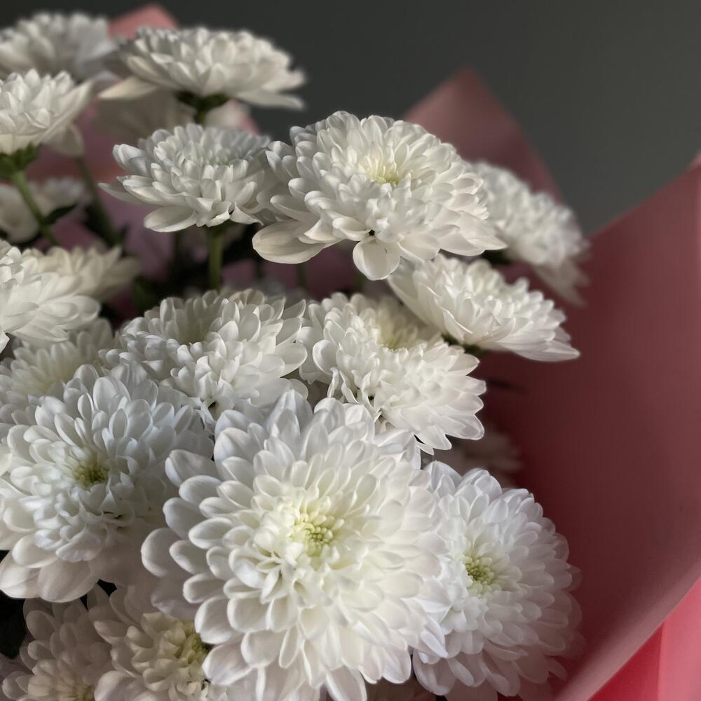 Букет из белоснежных кустовых хризантем в нежной розовой упаковке создает атмосферу легкости и утонченности, олицетворяя чистоту чувств и элегантность вкуса. С удовольствием подпишем бесплатную открытку с вашими теплыми пожеланиями и приложим к букету. Доставим быстро и бережно нашими курьерами