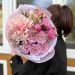 Alstroemeria - 1 pz Limonio - 1 pz Cespuglio di crisantemo - 1 pz Nastro di raso - 1 pz Роза пионовидная - 1 pz Упаковка дизайнерская - 2 pz Роза французская - 1 pz памятка по уходу и подкормка для цветов - 1 pz