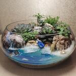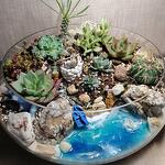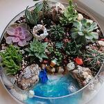 Впустите в дом сказку. Ландшафтный сад. Уникальный удивительный подарок будет радовать гораздо дольше, чем обычный букет. Кроме того, это интересное интерьерное решение. В дальнейшем можно самому стать садовником в своём саду и заменять растения по своему вкусу и желанию. Композиция сохраняется от 6 месяцев при правильном уходе. Потом увеличивающийся размер растений может нарушить эстетику. В композиции использовано более 11 живых суккулентов. При заказе этой композиции с заказчиком обговариваются растения, которые будут доступны к приобретению. Кроме того, учитываются пожелания и дополнения клиента. Возможно сделать любой сад и воплотить любую мечту наших клиентов. На фото представлены несколько вариантов ,сделанных под заказ флорариумов.