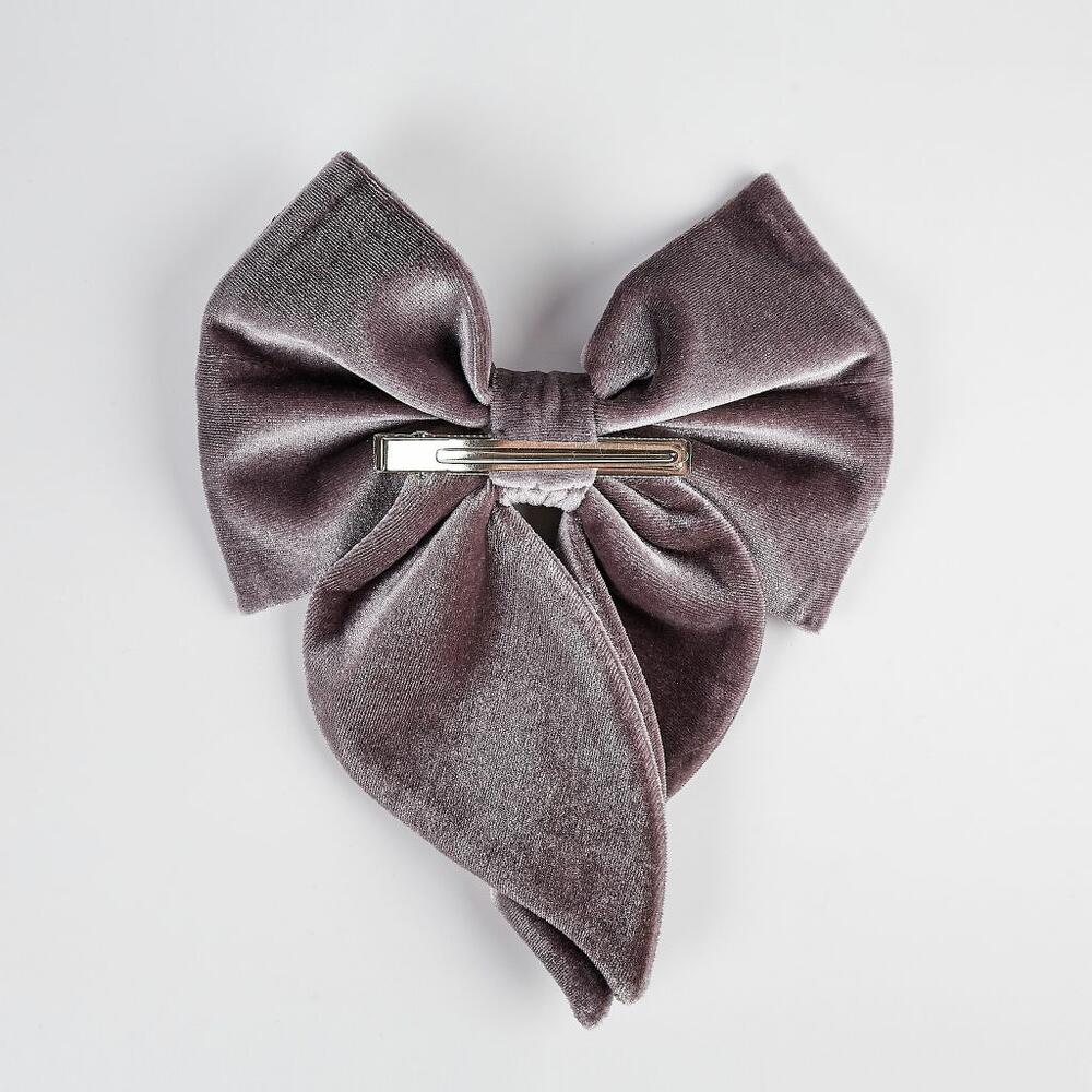Бант для волос из серебряного бархата