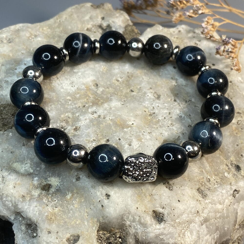 Соколиный глаз — натуральный минерал с мистическими синими переливами. Гладкие, прохладные бусины приятно облегают запястье, а фурнитура из нержавеющей стали подчёркивает благородство природного минерала и гарантирует долговечность украшения. Сталь не темнеет и не боится воды — браслет прослужит вам долго, сохраняя первозданный вид. Идеально подходит на запястье 16–18 см, мягко обнимая руку. Браслет собран из натурального соколиного глаза и гипоаллергенной стали. Доставим в подарочном льняном мешочке