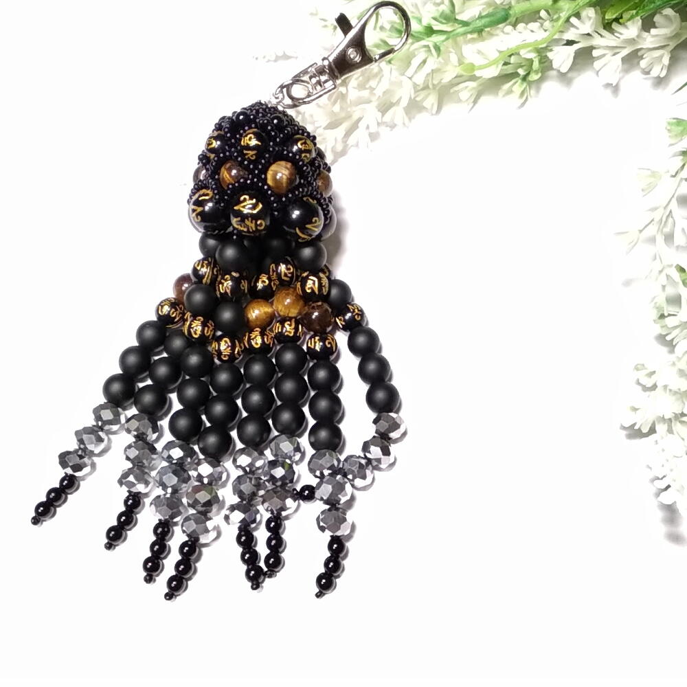 Брелок с тигровым глазом, агатом и черными акриловыми бусинами с иероглифами Золотого дракона - это стильный и функциональный аксессуар, который подойдет как для мужчин, так и для женщин. Тигровый глаз - это камень, который символизирует силу, защиту и мудрость. Он помогает владельцу обрести уверенность в себе и своих силах, а также защищает от негативных воздействий. Агат - это камень, который приносит удачу и успех в делах. Он также помогает улучшить настроение и уменьшить стресс. Иероглифы Золотого дракона символизируют мудрость, силу и удачу. Они помогают привлечь удачу и успех во всех начинаниях. Брелок можно использовать как для ключей, так и в качестве кулона на шее или джинсах, подвесить на сумку или рюкзак, так же при вашем желании вы можете повесить в салоне автомобиля. Он станет отличным подарком для тех, кто ценит стиль и функциональность. Ширина брелока 4см, высота 16 см.