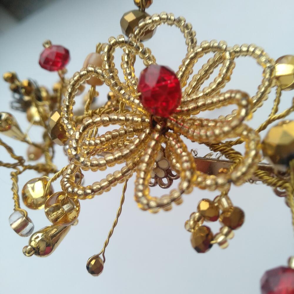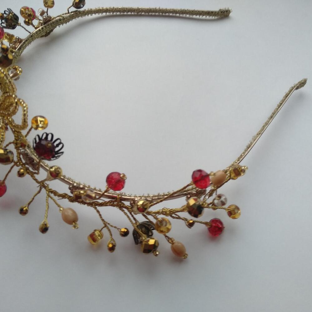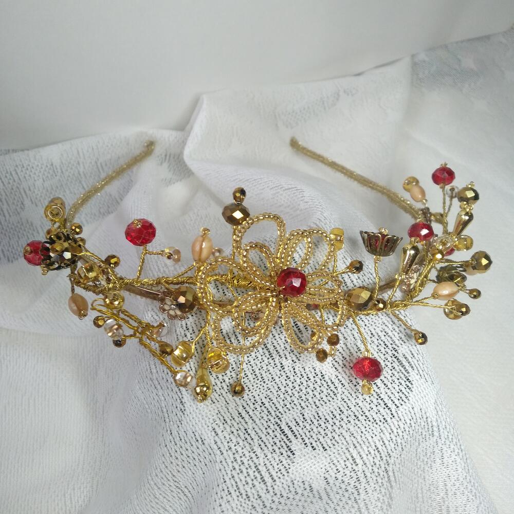 Диадема в цвете - золото. Выполнена в технике проволочного плетения. Оригинальный дизайн. Придаёт образу романтический нарядный вид и прекрасное настроение.