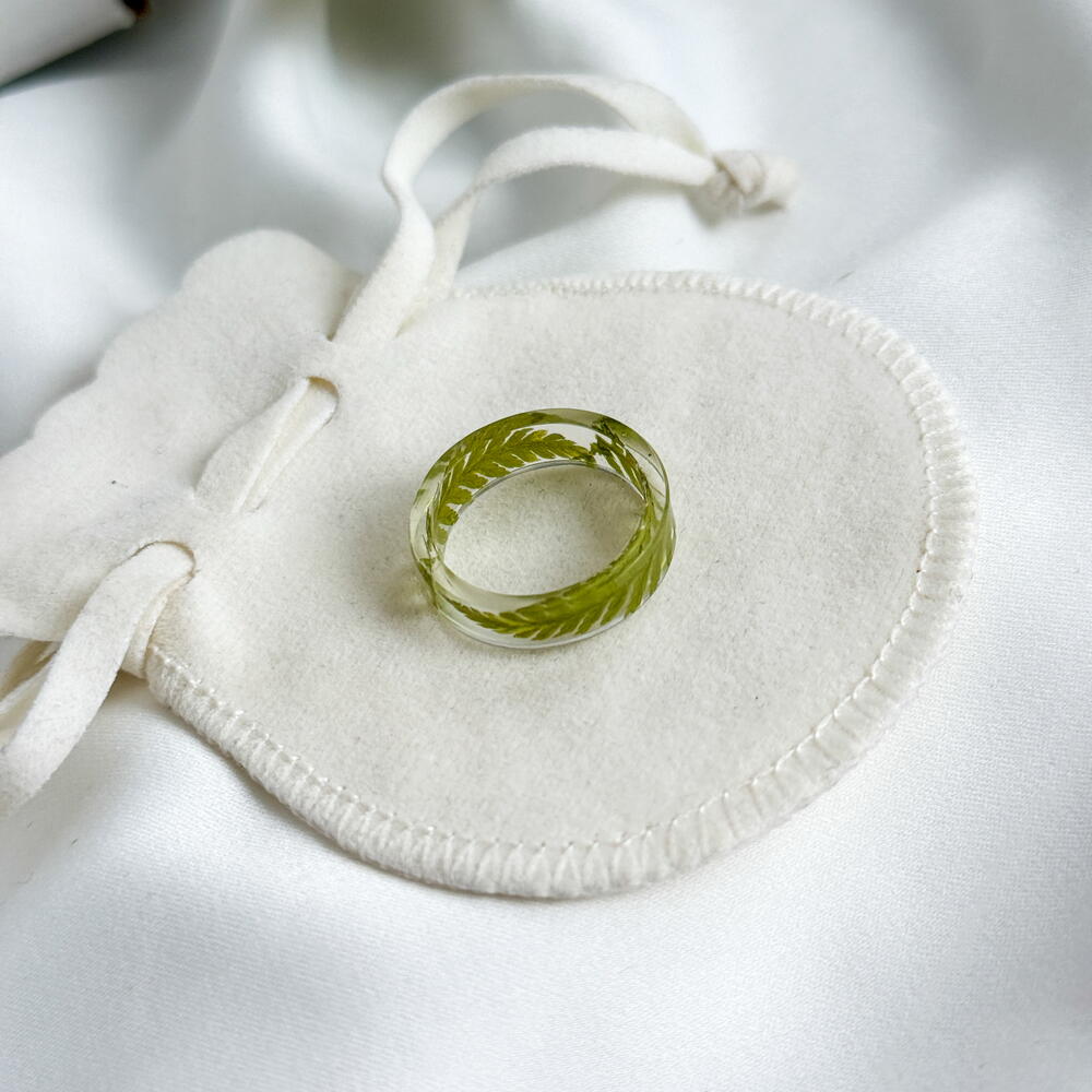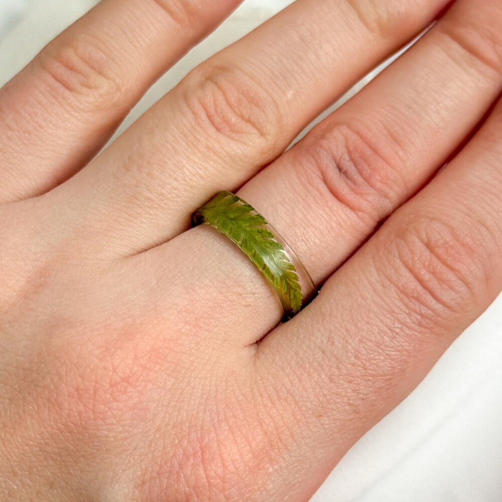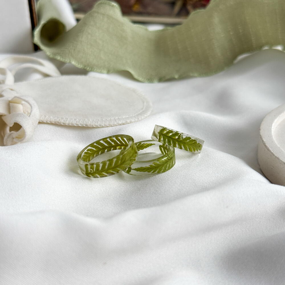 Кольцо из эпоксидной смолы с папоротником 17 размер ,подарок девушке,подарок маме, на 8 марта