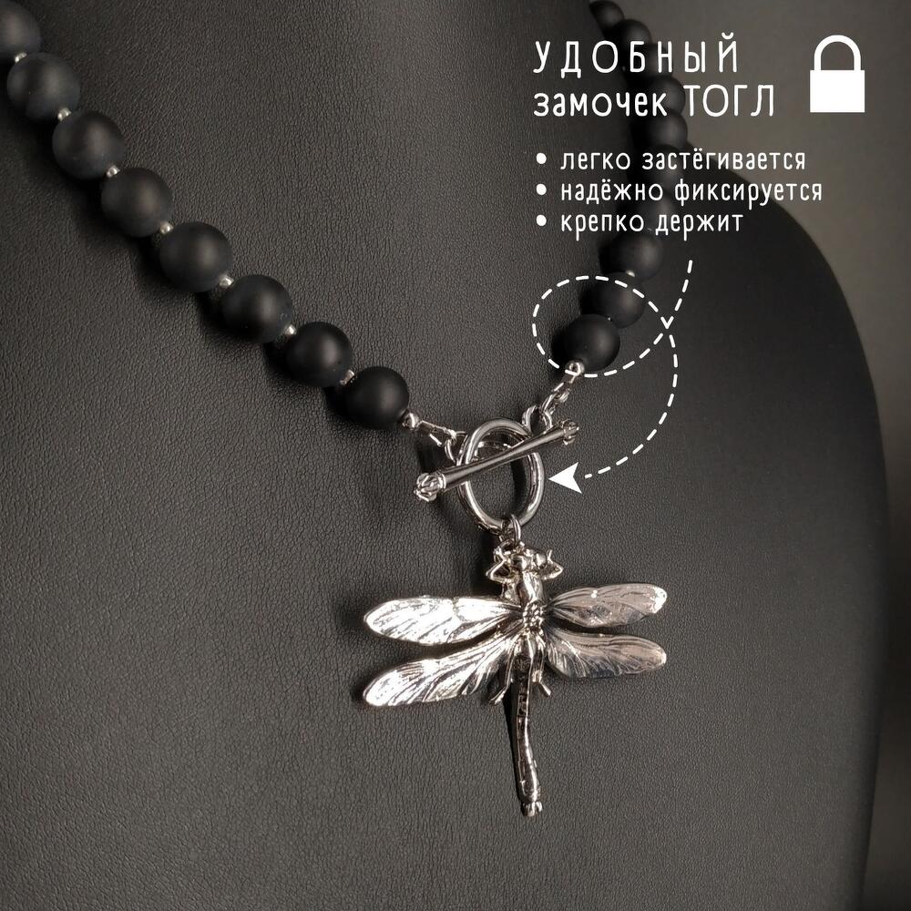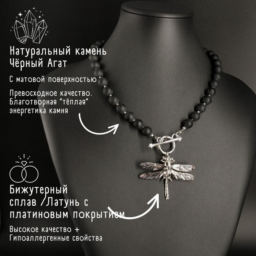 • ЭЛЕГАНТНОЕ ОЖЕРЕЛЬЕ • из матовых бусин натурального камня Чёрного Агата с роскошным крупным кулоном в форме стрекозы Впечатляющий подарок для себя или близкого человека - девушки, сестры, мамы, жены✨ 📍 Ювелирная ручная работа 📍 Эксклюзивный авторский дизайн 📍 Сделано в Москве 📏 Р А З М Е Р Ы: 🔹 Длина (без подвесок) ~ 49 см 🔹 Длина подвески ~ 5 см *** Невероятной красоты колье-чокер из крупных матовых бусин натурального чёрного Агата — камня, пропитанного женской энергией.🔥 С шикарнейшей крупной прекрасно детализированной подвеской в форме стрекозы.😍 Колье очень эффектное, в меру увесистое, но с приятной и комфортной тяжестью дорогого ювелирного украшения на теле.✨ Как роскошная вуаль на Вашей изящной шее, согревающее энергией природных камней.♥️ Очень гибкое, подвижное, послушное, благодаря крошечным бусинкам - удивительной красоты и качества Японскому бисеру с серебряным напылением. И объединяет всю эту красоту универсальный замок тогл. Настоящее ювелирное украшение💎, достойное стать подарком как для себя любимой, так и для близкого человека. ☝️Идеальный аксессуар, чтобы почувствовать себя особенной. 🔥 С О С Т А В: 🔹 Натуральный камень Чёрный АГАТ с матовым финишем 🔹 Высококачественный Японский бисер 🔹 Ювелирная фурнитура из хирургической / нержавеющей стали под серебро 🔹 Бижутерный сплав / латунь с платиновым покрытием Фурнитура гипоаллергенна - комфортно контактирует с чувствительной кожей. При заботливом использовании будет радовать долгие годы. ⚠️⚠️⚠️ РЕКОМЕНДАЦИИ ПО ХРАНЕНИЮ И УХОДУ: Ниже приведены *Общие рекомендации* по уходу за бижутерией. Правила не жёсткие, однако наиболее полное следование им поможет украшениям радовать Вас максимально долгое время. 1. Бережное обращение во всех его проявлениях; 2. Не допускайте намеренных механических воздействий: растяжение, давление, сильное скручивание, удары (не ронять); 3. Берегите от влаги, прямых солнечных лучей и воздействия бытовой химии; 4. Храните в сухом, тёмном, проветриваемом месте (шкатулка/бархатный мешочек) ОТДЕЛЬНО от других украшений, особенно металлических, чтобы избежать порчи покрытия и образования пятен; 5. Наряжаясь, надевайте украшения в последнюю очередь (ПОСЛЕ нанесения косметики и парфюмерии), а снимайте - в первую (особенно перед сном и гигиеническими процедурами); 6. Избегайте контакта с морской водой, не принимайте в украшениях душ; 7. Уход: если на изделии появились следы загрязнения, аккуратно протрите его сухой мягкой ворсистой тканью/ветошью. Приятных покупок!❤️