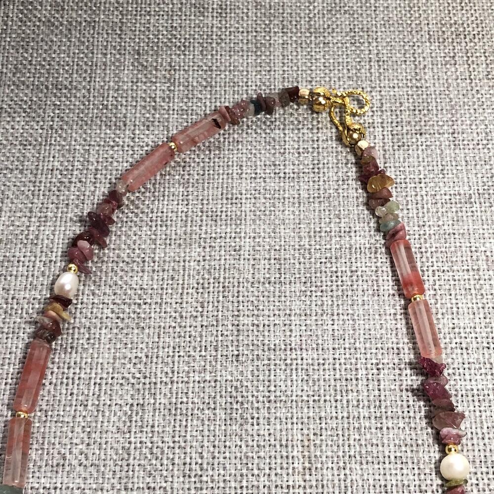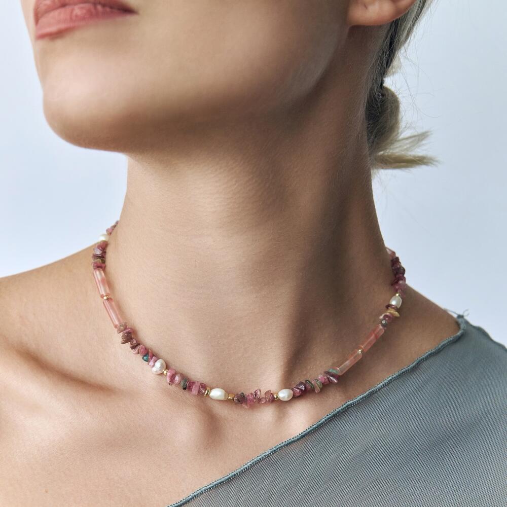 Колье из турмалина с жемчугом, подарок девушке на 14 февраля
