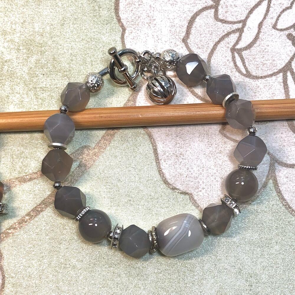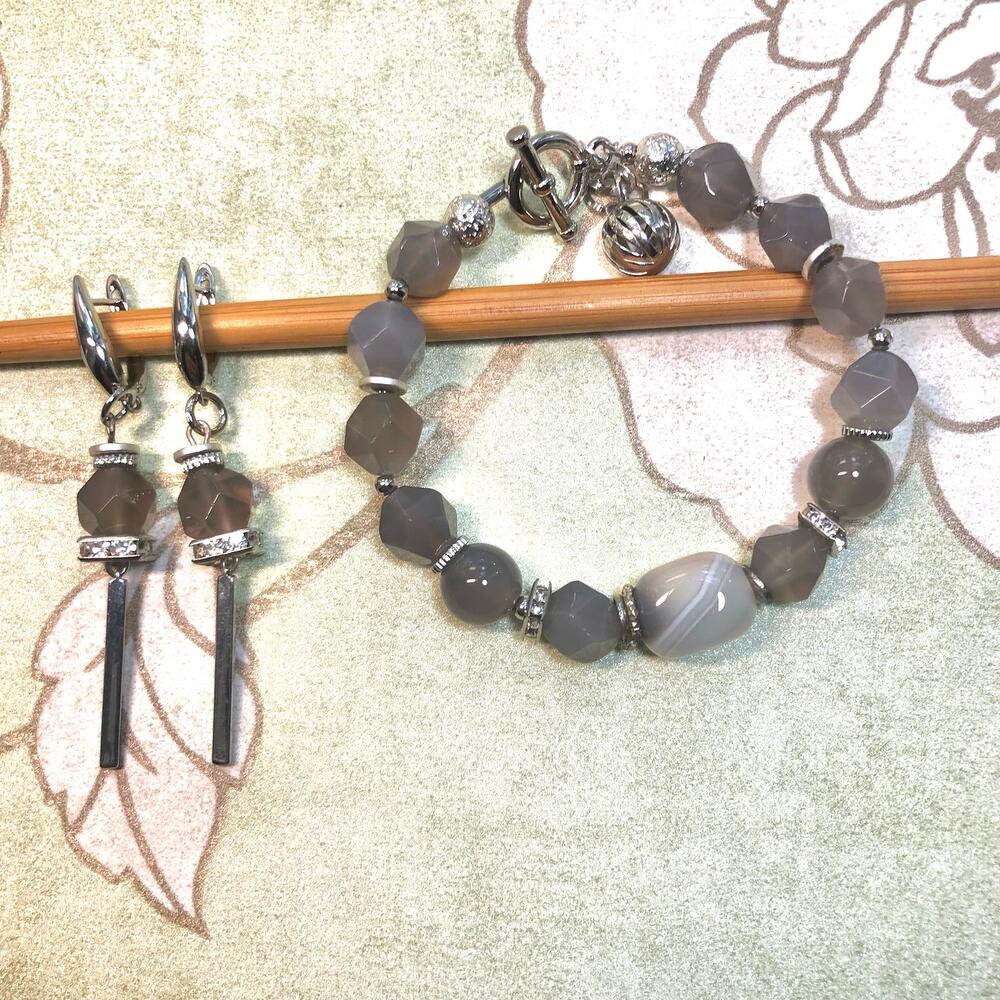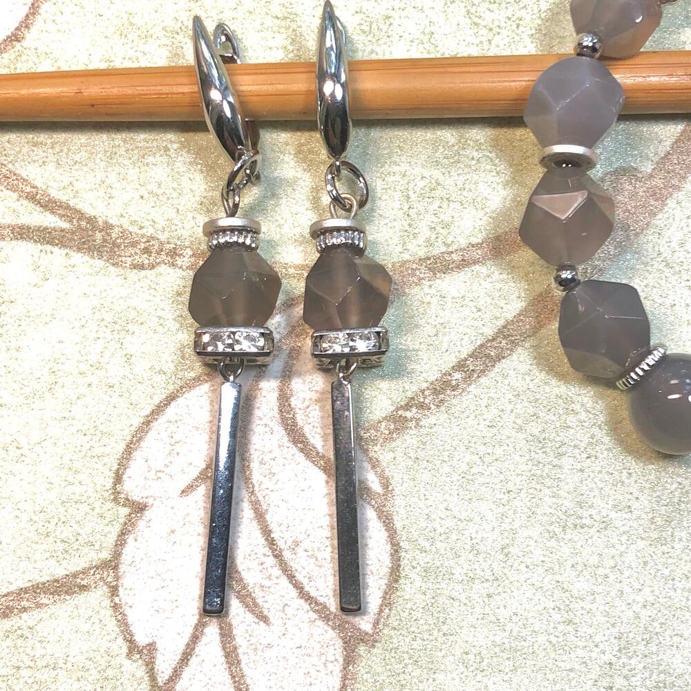 Фурнитура Натуральный агатсеро-дымчатого цвета. Фурнитура премиум класса с покрытием родий ,гипоаллергенна.