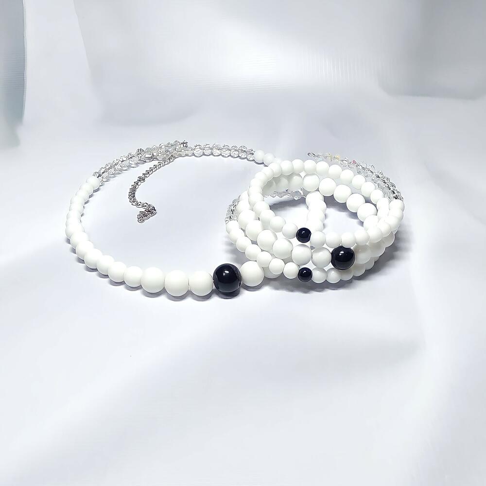 Комплект украшений с агатами Парад планет - это истинное воплощение элегантности и стиля. Каждый элемент этого комплекта, создан с любовью к деталям. Черные и белые агаты придают комплекту неповторимый шарм. Особое внимание следует обратить на возможность регулировки размера чокера с помощью цепочки. Это позволяет подстроить его под индивидуальную особенность вашей шеи. Браслет на запястье руки (15-18 см), что делает его комфортным для ношения. Агаты являются символами мудрости и гармонии. Они способствуют притоку положительной энергии в вашу жизнь и помогут достичь успехов в различных областях жизни. Что касается продолжительности службы этого комплекта, то он будет радовать свою хозяйку долго благодаря правильно организованному уходу за камнями. Рекомендуется избегать контакта с химическими веществами и механических повреждений, чтобы сохранить его первозданный вид. Комплект украшений с агатами Парад планет - подчеркнет вашу индивидуальность. Неотразимый образ гарантирован!