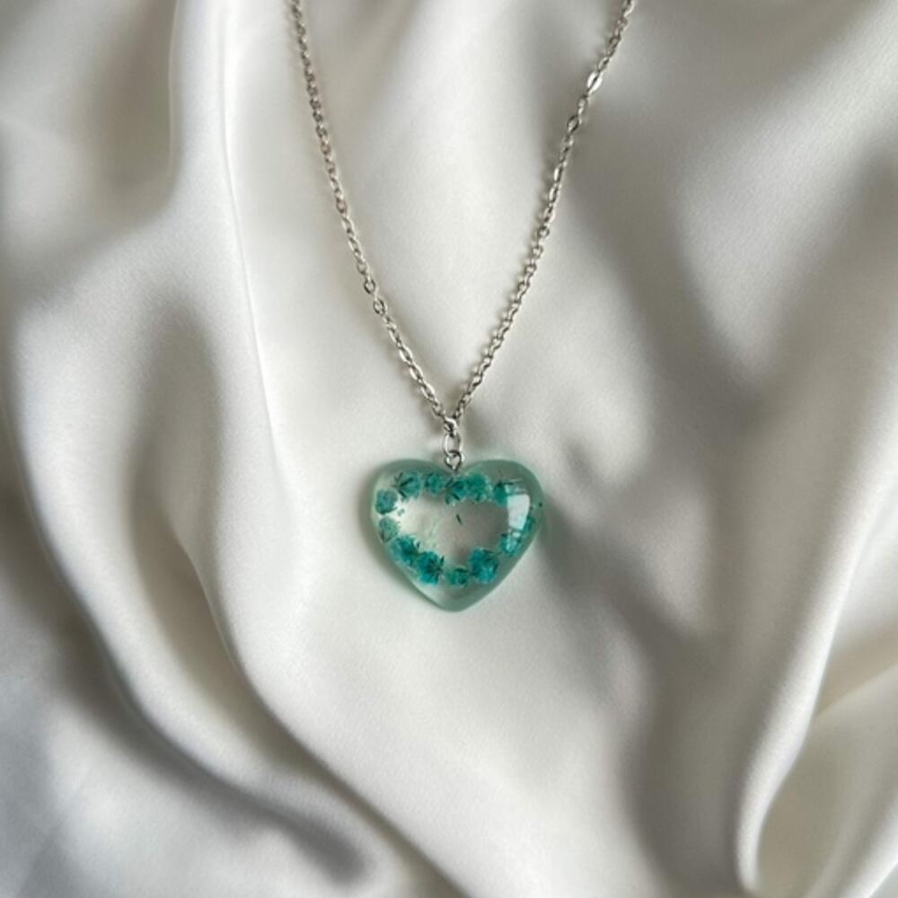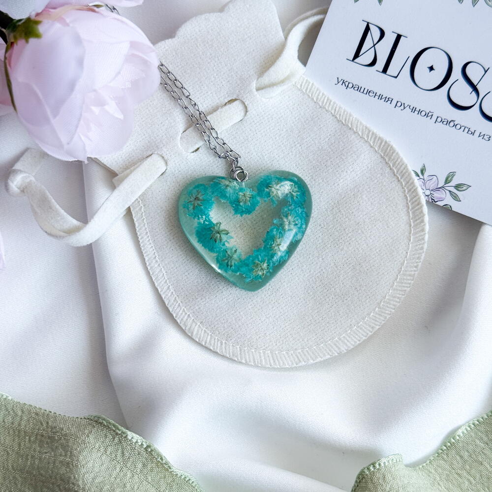 Подарок на 8 марта Кулон подвеска сердце с сухоцветом гипсофилы