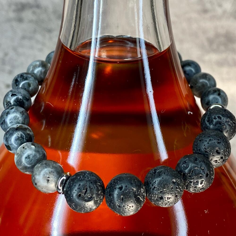 Классический дизайн, стиль подходящий любому! Натуральный камень лаврикит и вулканическая лава. Идеально подойдет на запястье 16 см. Доставим в подарочном льняном мешочке.