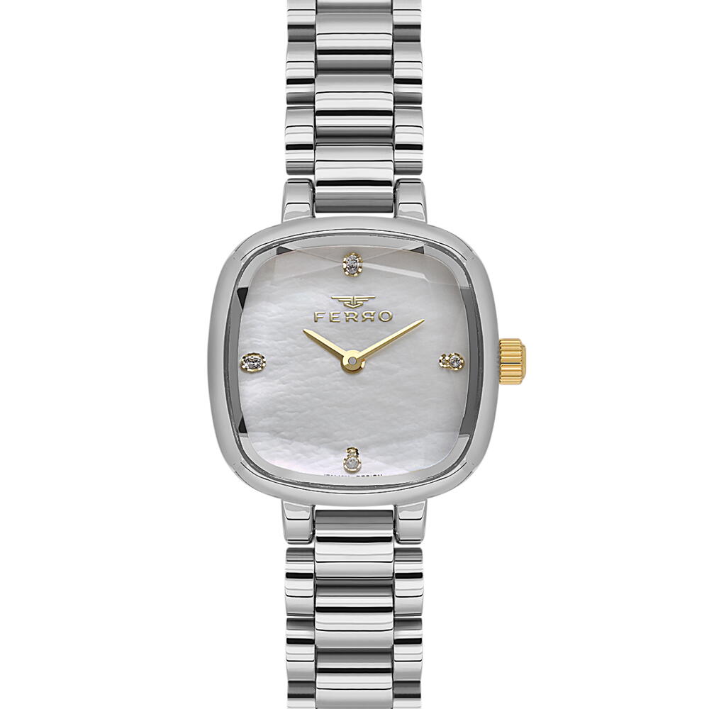 Наручные женские часы Ferro FL43028A-A Характеристики Размер — 25*25 мм Материал браслета — Нержавеющая сталь Цвет браслета — Серебро Пол — Женские Форма — Квадрат Механизм — Кварцевый Материал корпуса — Alloy Стекло — Минеральное Цвет корпуса — Серебро Покрытие — нитрид титана Цвет циферблата — Серебро Оформление цифр — Кристаллы Класс водозащиты — 3 ATM Комплектность — Гарантийный талон, фирменная коробка, фирменный пакет Страна бренда — Италия Гарантия — 12 месяцев