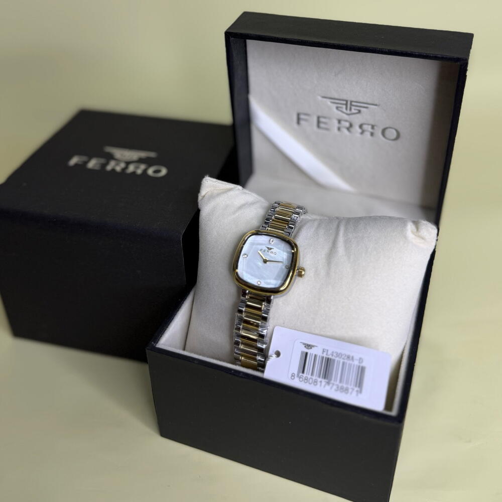Наручные женские часы Ferro FL43028A-D Характеристики Размер — 25*25 мм Материал браслета — Нержавеющая сталь Цвет браслета — Комбинированный Пол — Женские Форма — Квадрат Механизм — Кварцевый Материал корпуса — Alloy Стекло — Минеральное Цвет корпуса — Комбинированный Покрытие — нитрид титана Цвет циферблата — Зелёный Оформление цифр — Кристаллы Класс водозащиты — 3 ATM Комплектность — Гарантийный талон, фирменная коробка, фирменный пакет Страна бренда — Италия Гарантия — 12 месяцев