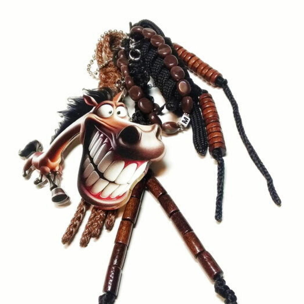 Это изящное украшение для сумки — настоящий мультифункциональный аксессуар с особым смыслом! В его дизайне гармонично сочетается подвеска брелок в благородных черно коричневых тонах и съёмный браслет. Последний можно легко отсоединить от кольца и надеть на запястье — он идеально подойдёт для детской руки с обхватом 14–15 см. Особую актуальность изделию придаёт символика: в год Лошади центральная деталь — акриловая подвеска в виде грациозного животного — становится не просто украшением, а своеобразным талисманом, несущим энергию и дух этого благородного зверя. Качество исполнения и материалов находится на высочайшем уровне: натуральные деревянные бусины с приятной текстурой и тёплым оттенком; прочный полиэфирный шнур, устойчивый к износу и деформациям; надёжный паракорд, известный своей износостойкостью и долговечностью. Каждый элемент подобран с вниманием к деталям, что делает аксессуар не только красивым, но и практичным. Это отличный выбор для тех, кто ценит: оригинальность дизайна; многофункциональность (брелок + браслет); натуральные и качественные материалы; символическую составляющую в украшениях.
