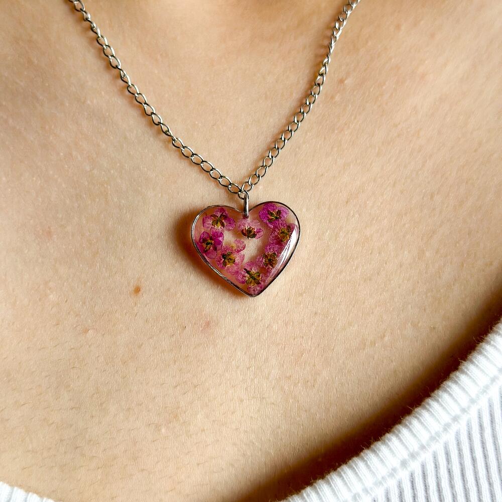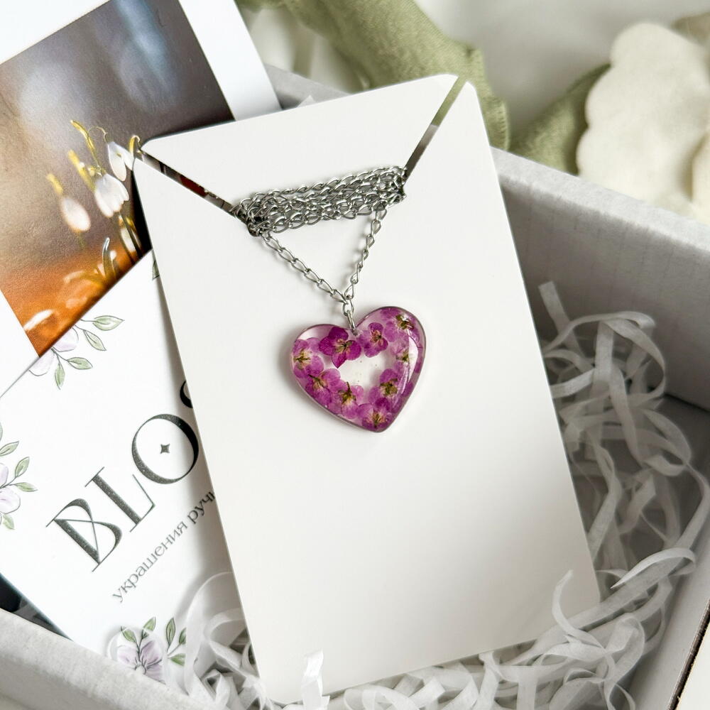 Эпоксидная смола Цепочка из гиппоаллергенной стали Сухоцвет розового алиссума