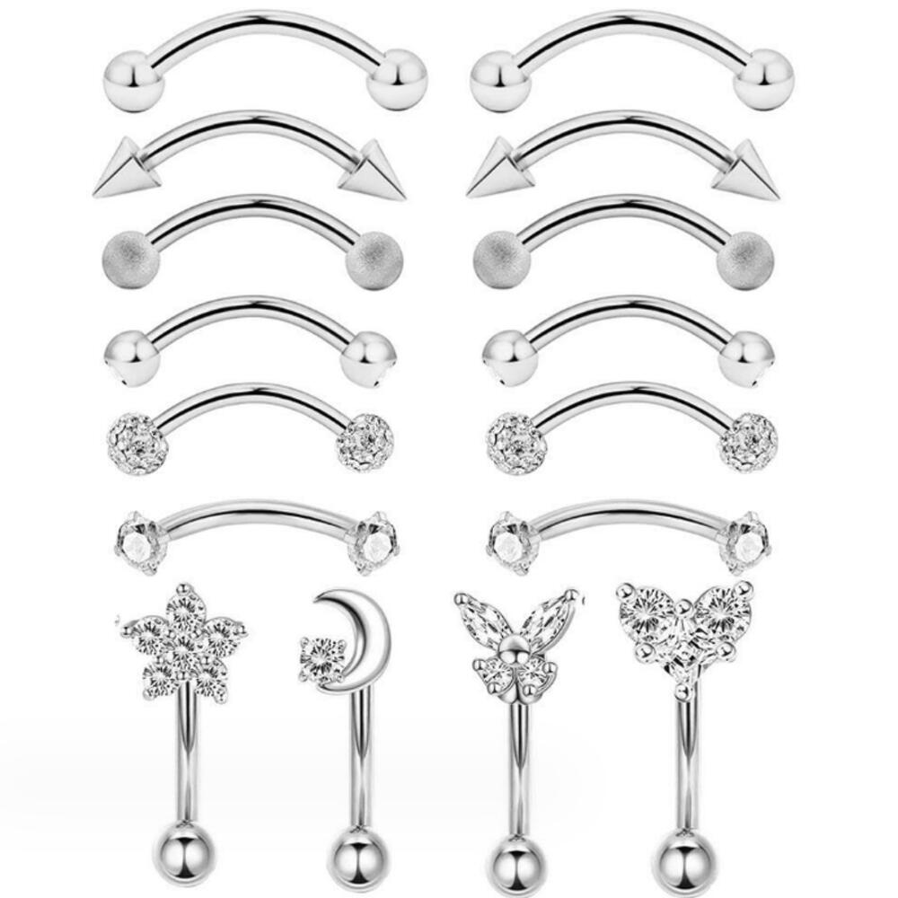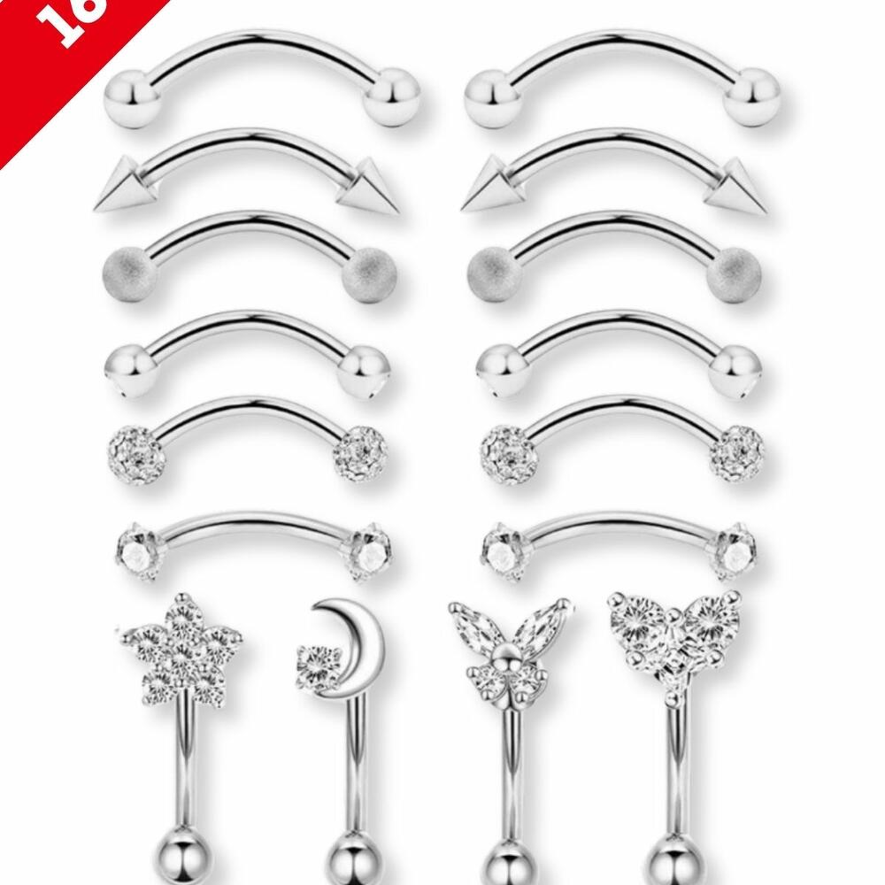 Комплектация: Пирсинг - 16 шт. в наборе Страна производитель: Китай Вес: 10 гр. Размеры: Толщина стержня 1,2 мм, длина 8 мм, шарик 3 мм, конус 4 мм, цветок 7 мм, полумесяц 7 мм, бабочка 4 мм, сердечко 6 мм Материал: Нержавеющая сталь 316L Длина, мм: 210 Ширина, мм: 110 Высота, мм: 40