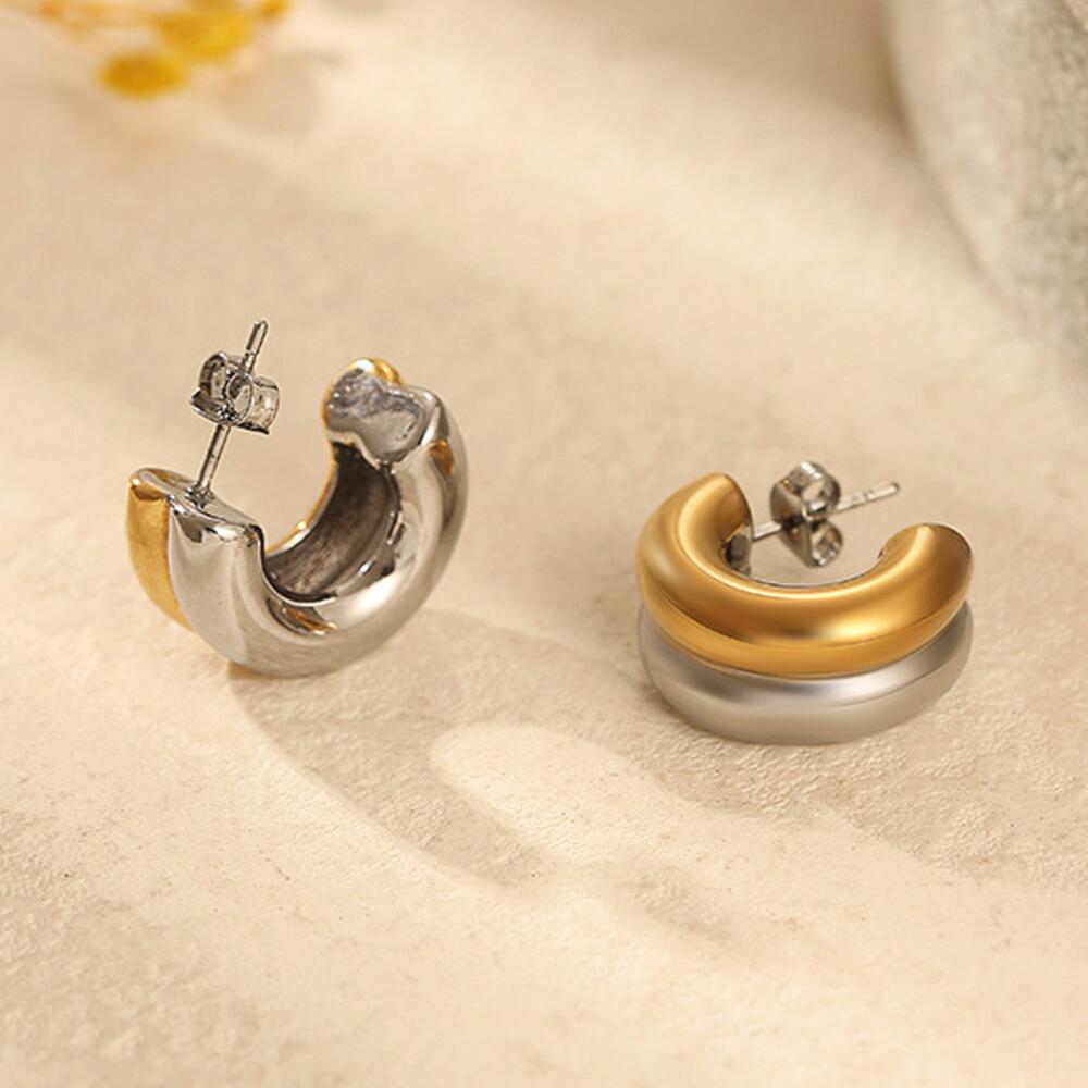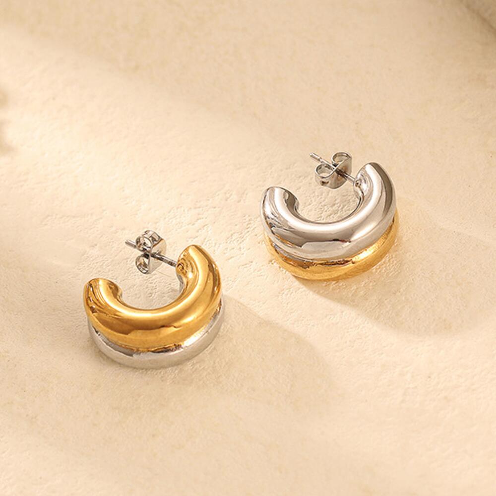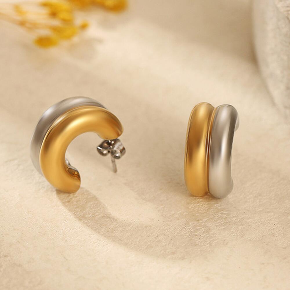 PR-ER-135 Серьги полукруглые гвоздики биколор из стали