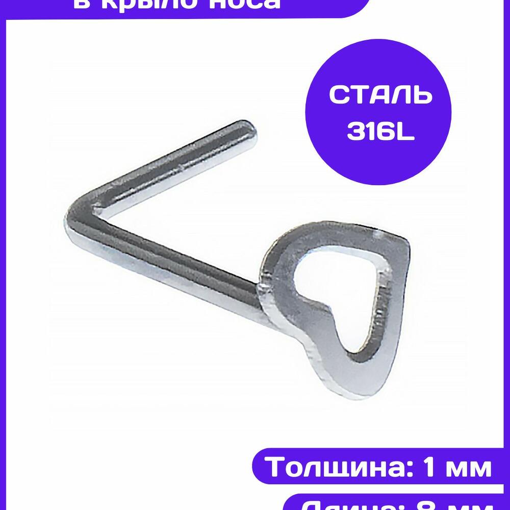 PR-NS-061 Пирсинг в нос нострил L-образный сердце серебристое