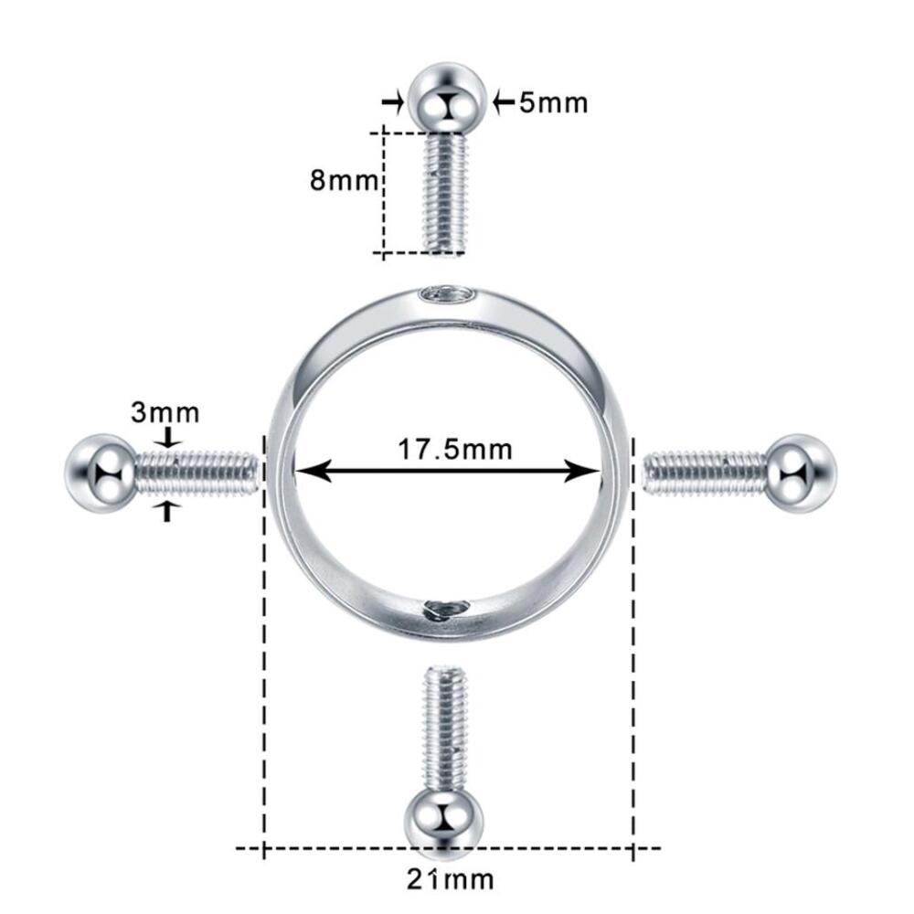Комплектация: Пирсинг-обманка для сосков - 2 шт. Страна производитель: Китай Вес: 8 гр. Размеры: Внутренний диаметр 17,5 мм, шарик 5 мм, толщина шурупа 3 мм, длина шурупа 8 мм Материал: Нержавеющая сталь 316L Длина, мм: 210 Ширина, мм: 110 Высота, мм: 40