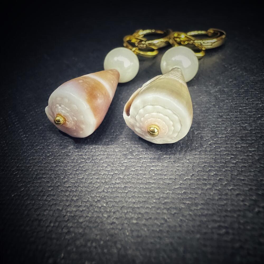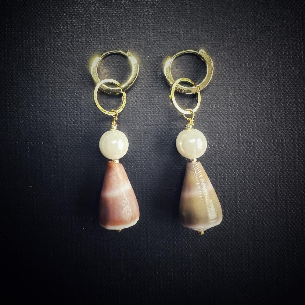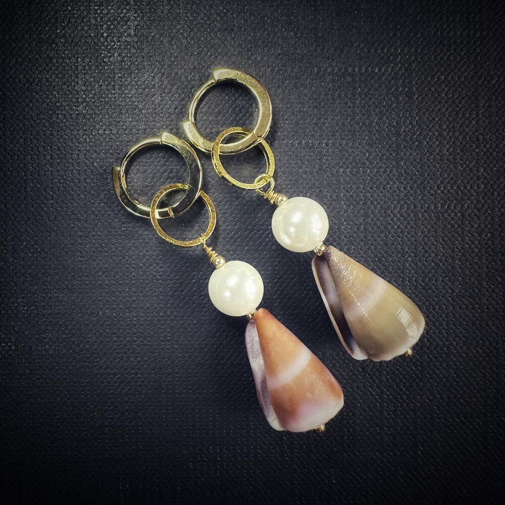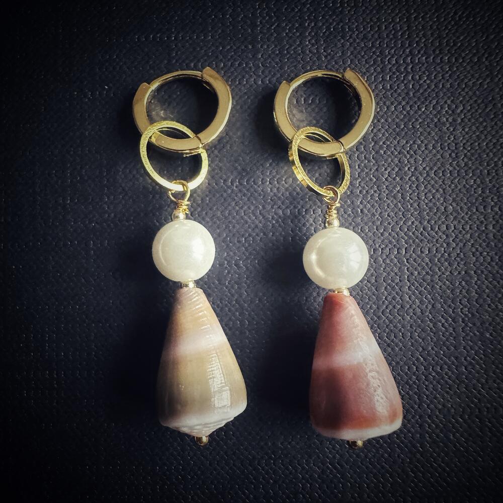 Серьги с ракушками Конус и искуственными жемчужинами, Coneshells Zanzibar