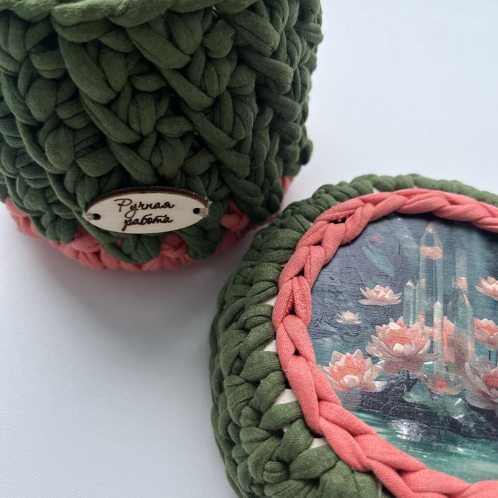 Интерьерная корзина ручной работы выполнена из хлопковых нитей. Корзина-шкатулка отлично подойдёт для хранения аксессуаров и любых других мелочей. Размер корзины 10*10см. Высота 10см.