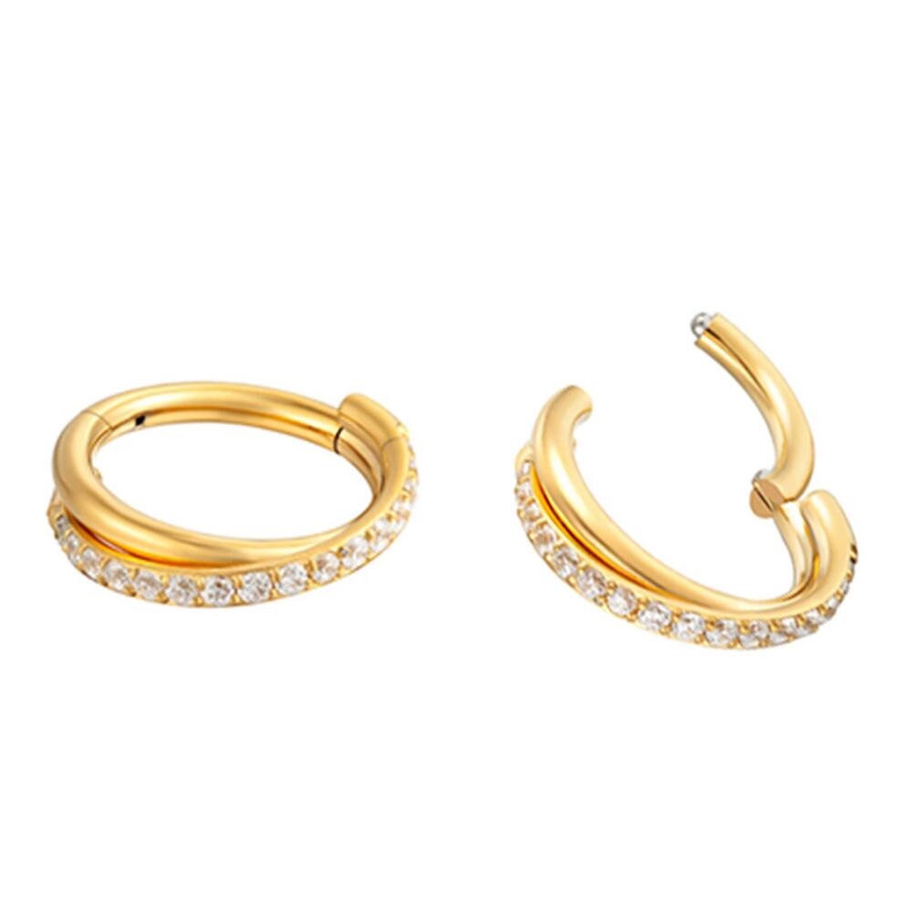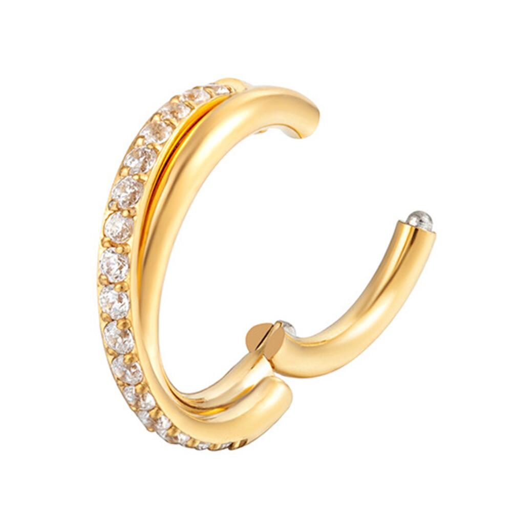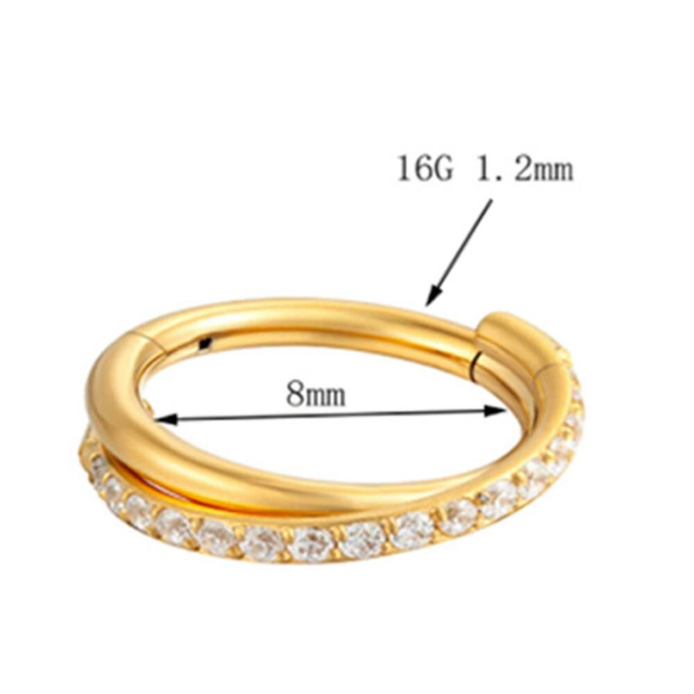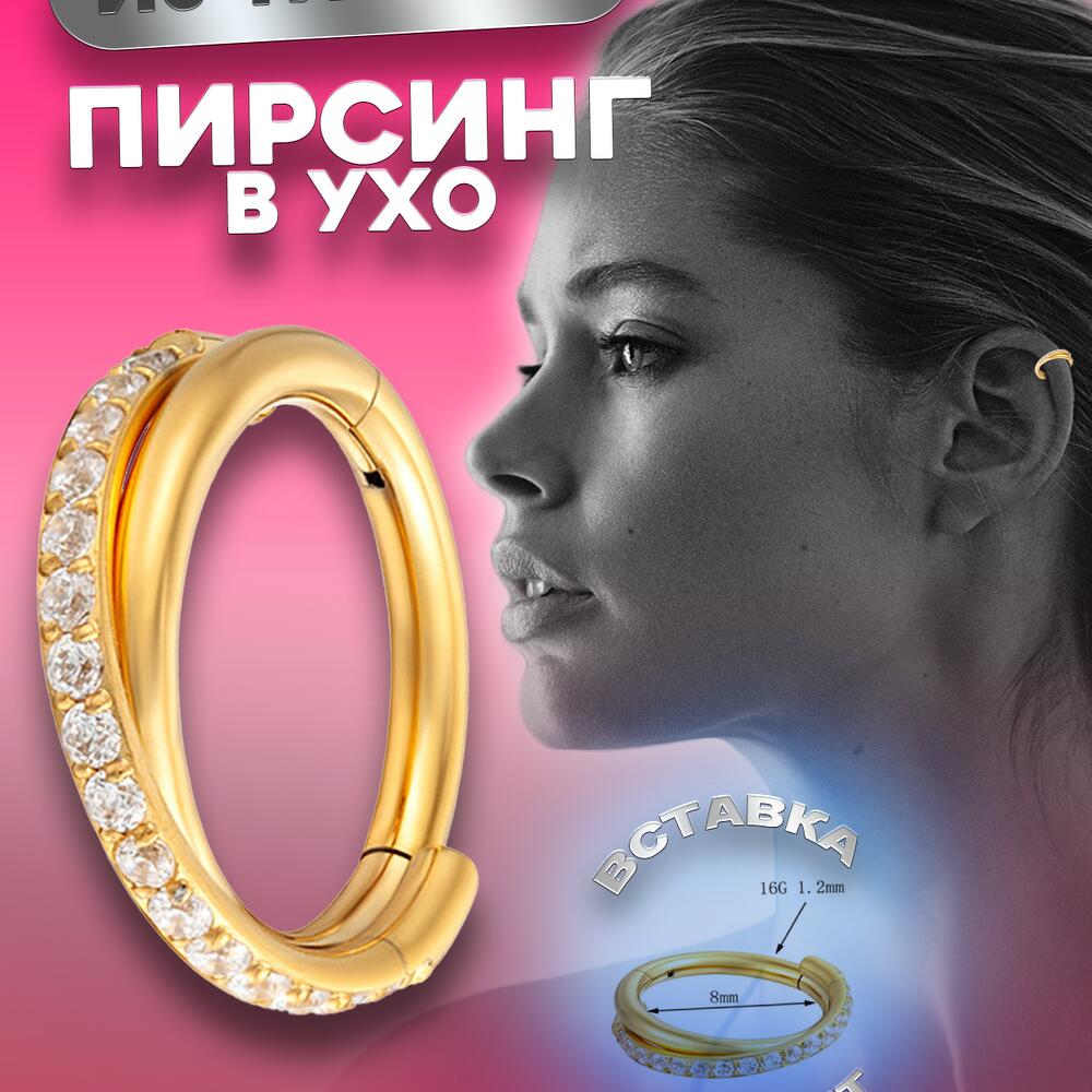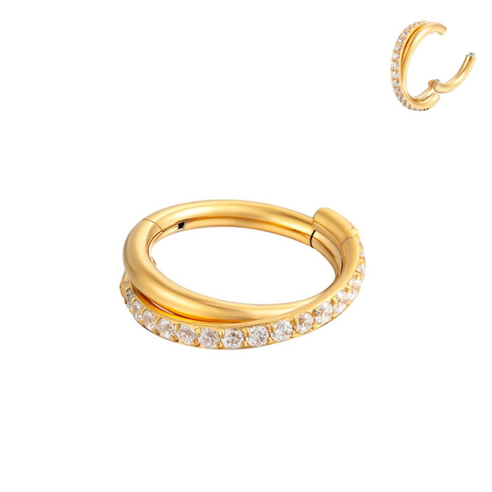 TIT-KL-026 Пирсинг кольцо из титана золотистое с фианитами