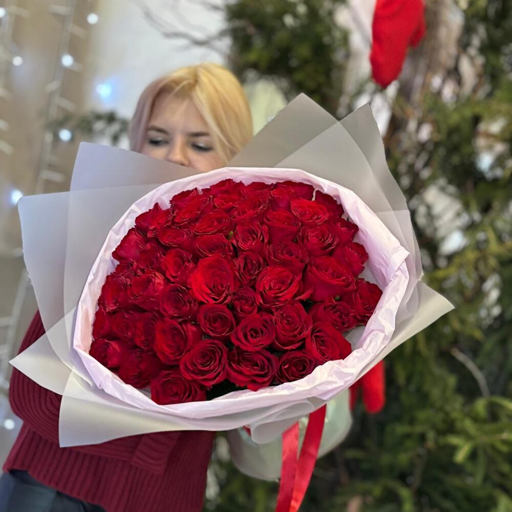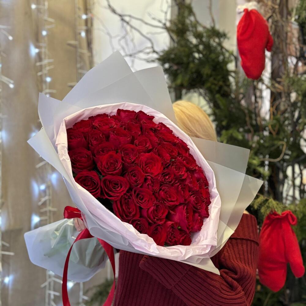 Раушан - 51 дана Безендіру - 1 дана Кризал (жоғарғы киім) - 1 дана Сіздің тілектеріңіз жазылған ашықхат - 1 дана инструкция по уходу за цветами - 1 дана