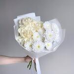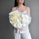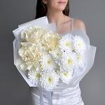 Нежный букет белая французская роза Мондиаль и хризантема