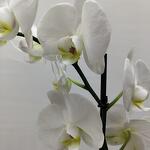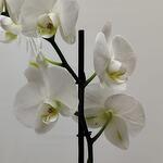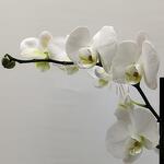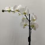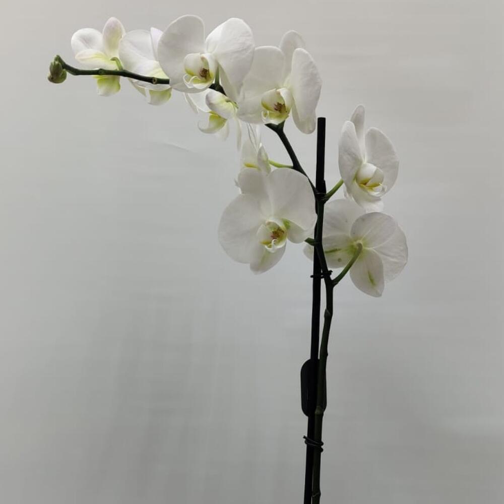 Одноствольная белая шикарная орхидея в прозрачном красивом стеклянном ( как необходимо ) горшке доя орхидей .