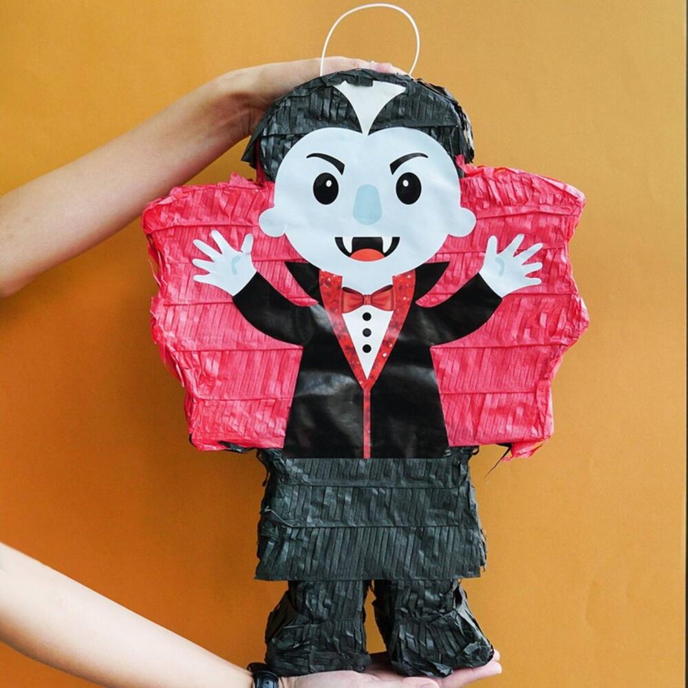 Эта пиньята Дракула — идеальный хит для Хэллоуинских вечеринок, где царит атмосфера загадок и веселья! Изготовленная из прочного папье-маше, она выдержит даже самые энергичные удары, чтобы в кульминации осыпать гостей конфетами и сюрпризами. Фигура графа высотой около 45 см захватывает дух: бледно-синяя кожа с милыми большими глазами и острыми клыками, развевающийся красный плащ с черной подкладкой, элегантный черный смокинг с белыми акцентами и классическая прическа с пробором. Дракула выглядит одновременно устрашающе и забавно — с распростертыми руками, готовыми обнять праздник! Подвесьте ее на высоте, и она станет центром внимания на костюмированной тусовке или детском празднике. Разбивая пиньяту, вы не просто получите сладости, а устроите настоящий вампирский триумф! 🧛♂️🎃