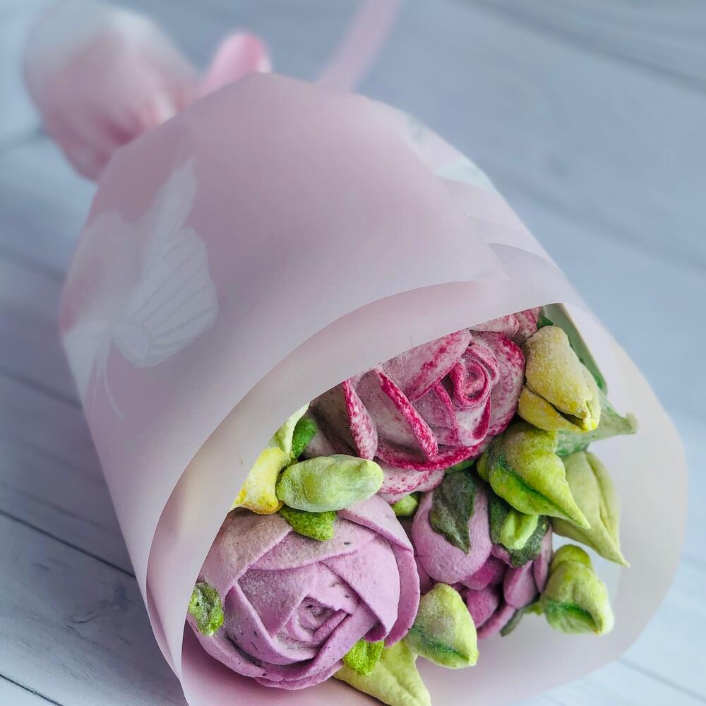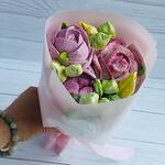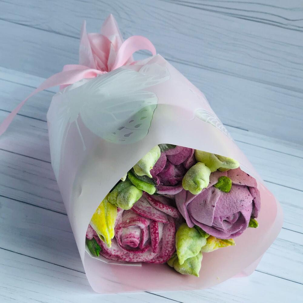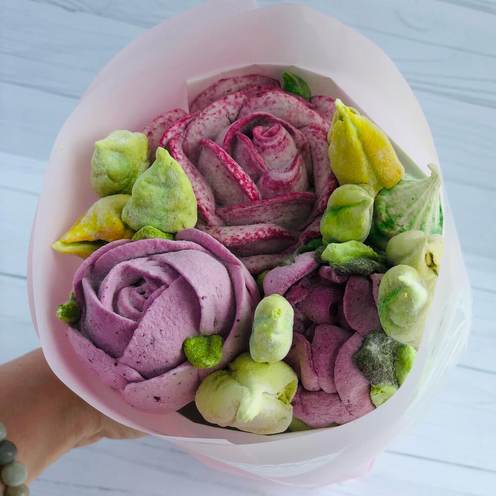 Съедобный букет из нежнейшего зефира ручной работы. Приятный подарок и вкусное лакомство.