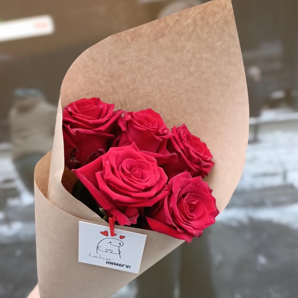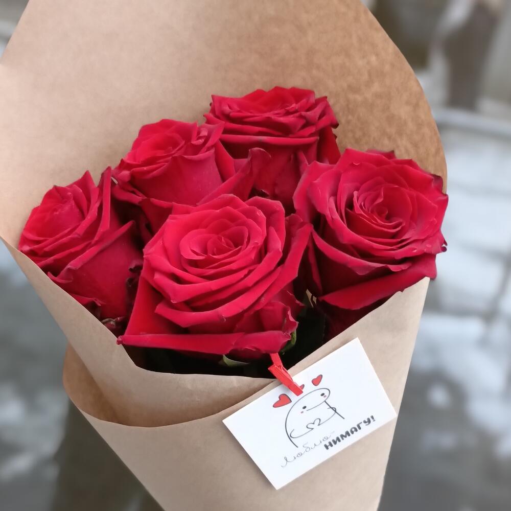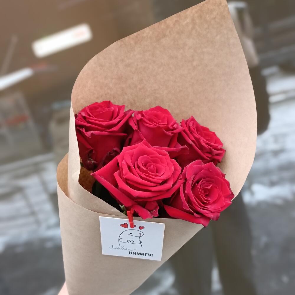 Pocztówka - 1 szt. Роза бордовая - 5 szt. Opakowanie Kraft - 1 szt.