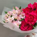 Alstroemeria - 6 szt. Pistasz - 2 szt. Opakowanie designerskie - 1 szt. выкрученная роза эквадор - 5 szt.