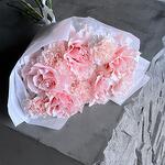 Нежный букет в пастельно розовых тонах для лёгкой и нежной натуры :) Для вашего удобства все наши букеты доставляются в воде! Не забудьте подрезать цветы НЕПОСРЕДСТВЕННО перед тем как ставить в вазу (после подрезки в течении 2-3 секунд поставьте в воду). Не храните букет на прямых солнечных лучах и возле отопительных приборов, чтобы сохранить цветы свежими как можно дольше. Обратите внимание на размеры букета и фото в полный рост с человеком, для понимания размера композиции, это фото есть в карточке товара :)