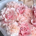 Taśma - 1 szt. Роза pink mondial - 5 szt. Designerskie opakowanie - 1 szt. диантус hanoi - 6 szt.