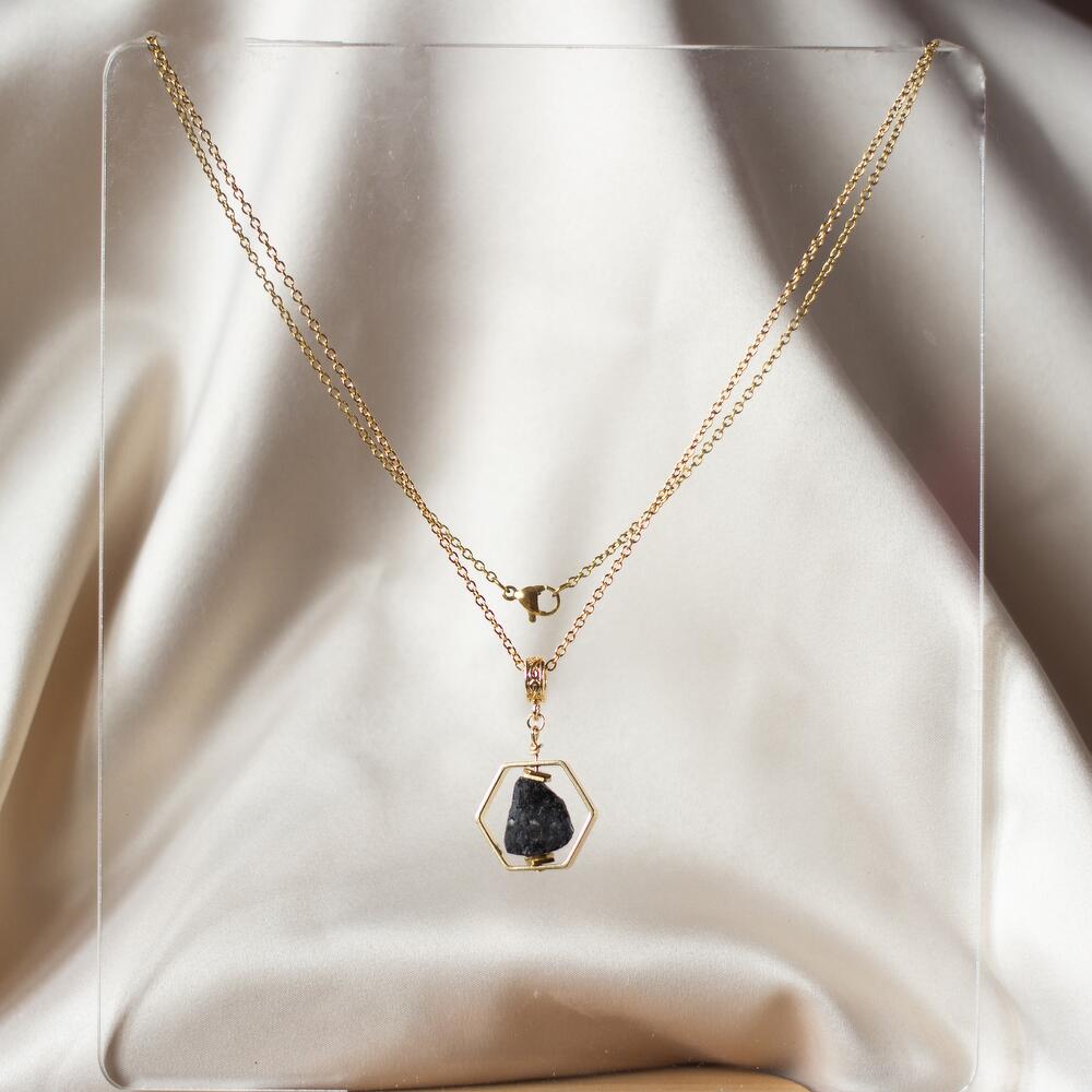 Черный турмалин натуральный необработанный Стойкая позолоченная фурнитура