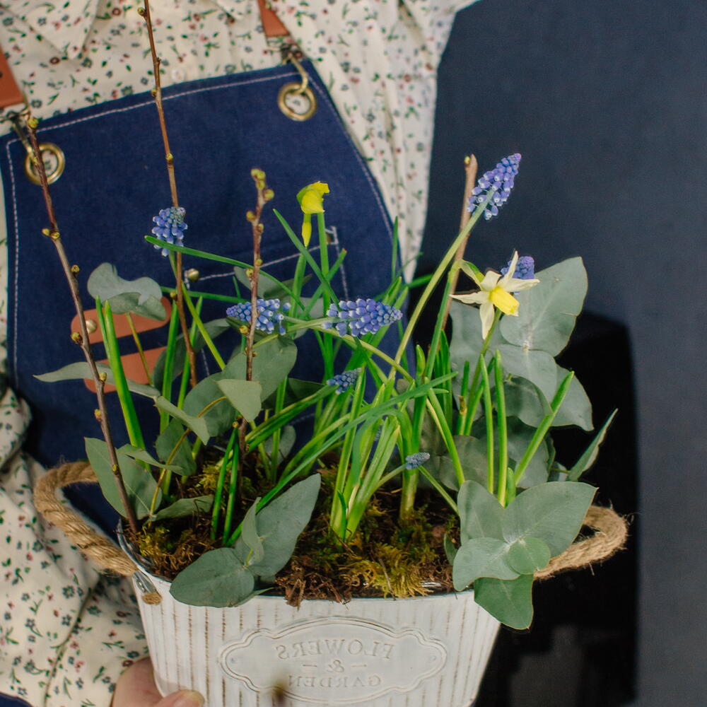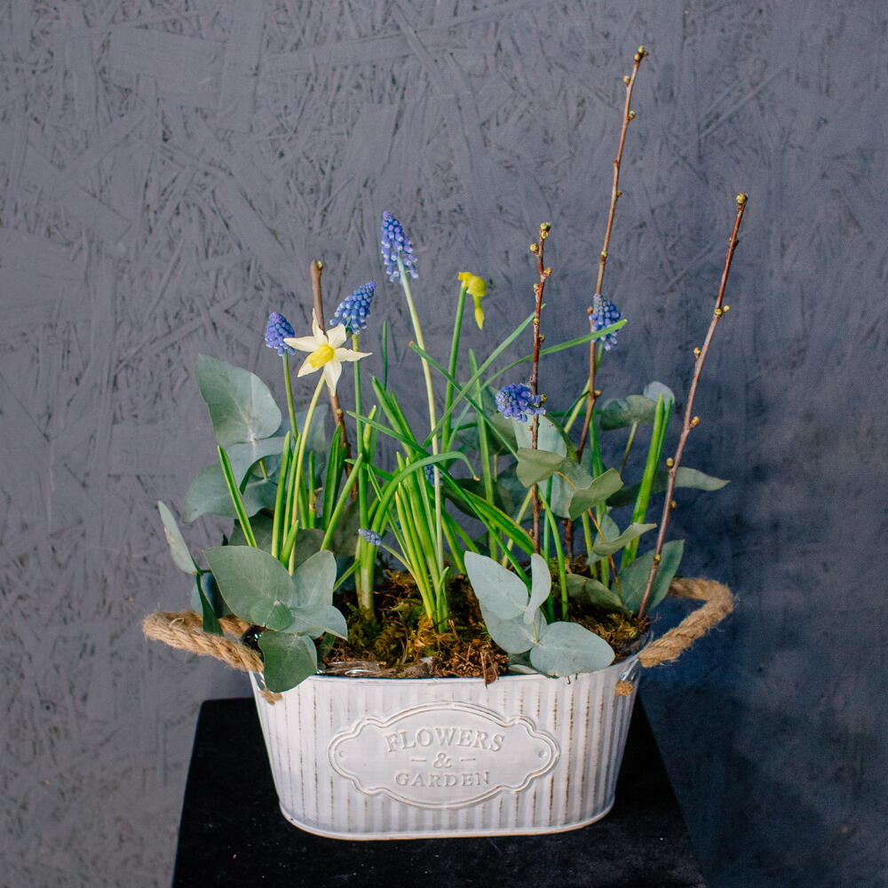 131M. Весенняя романтичная композиция с луковичными мускари и нарциссами