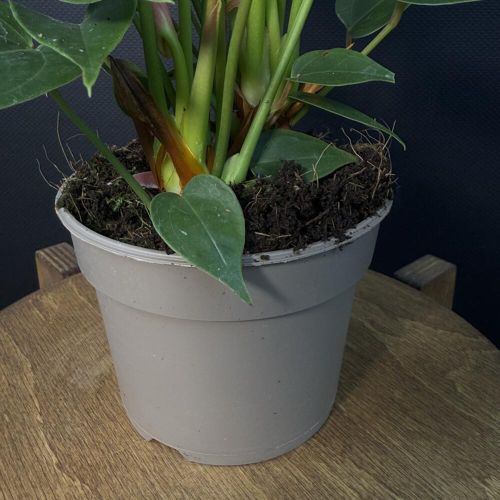Краткий уход за антуриумом: Полив: • Регулярный, 2-3 раза в неделю • Умеренный, без застоя воды • Использовать отстоянную воду комнатной температуры Освещение: • Тенелюбивое растение • Избегать прямых солнечных лучей • Предпочитает яркий рассеянный свет Влажность: • Любит высокую влажность • Регулярное опрыскивание листьев • Протирание листьев влажной губкой • Важно: не опрыскивать цветы Температура: • Оптимально: 25-30°C • Минимум: не ниже 15°C • При высокой температуре увеличить полив • При низкой - уменьшить полив Важно: растение предпочитает стабильные условия содержания и не любит резких перепадов температуры и освещения.