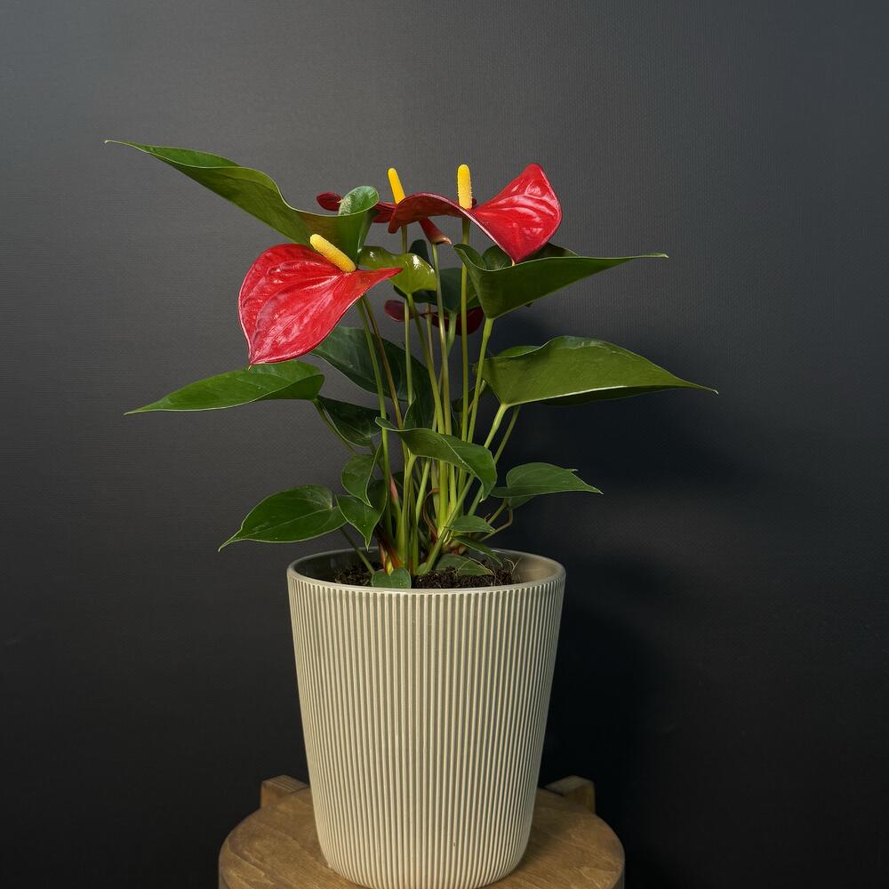 Роскошный антуриум - истинное украшение вашего дома! Цветок продается в транспортировочном кашпо. Этот великолепный тропический красавец с яркими красными цветками станет настоящим центром притяжения в любом интерьере. Изысканные сердцевидные прицветники и початок создают неповторимый архитектурный силуэт, который не оставит равнодушным ни одного гостя. Компактный размер (всего 35 см в высоту) позволяет разместить растение даже на небольшом подоконнике или столе. Период цветения с февраля по ноябрь подарит вам долгие месяцы наслаждения его экзотической красотой. Особенности: • Многолетнее растение • Не требует сложного ухода • Идеально для дома и офиса • Создает уютную атмосферу Подарите себе частичку тропического рая! Антуриум станет вашим надежным спутником в создании уютного и стильного пространства. 🎁 Закажите прямо сейчас и получите подробные рекомендации по уходу в подарок!