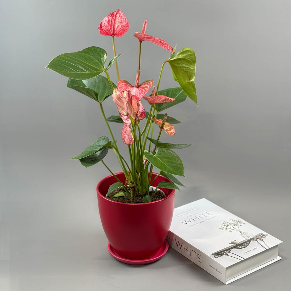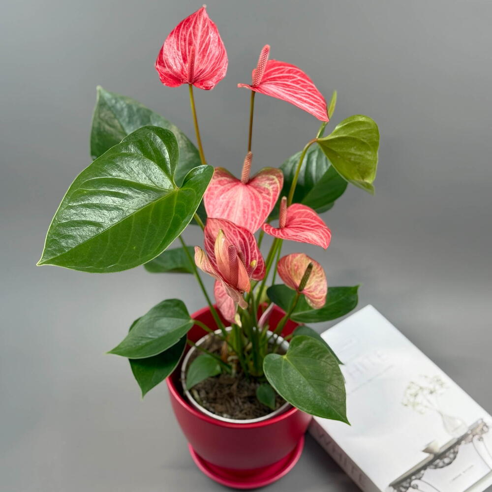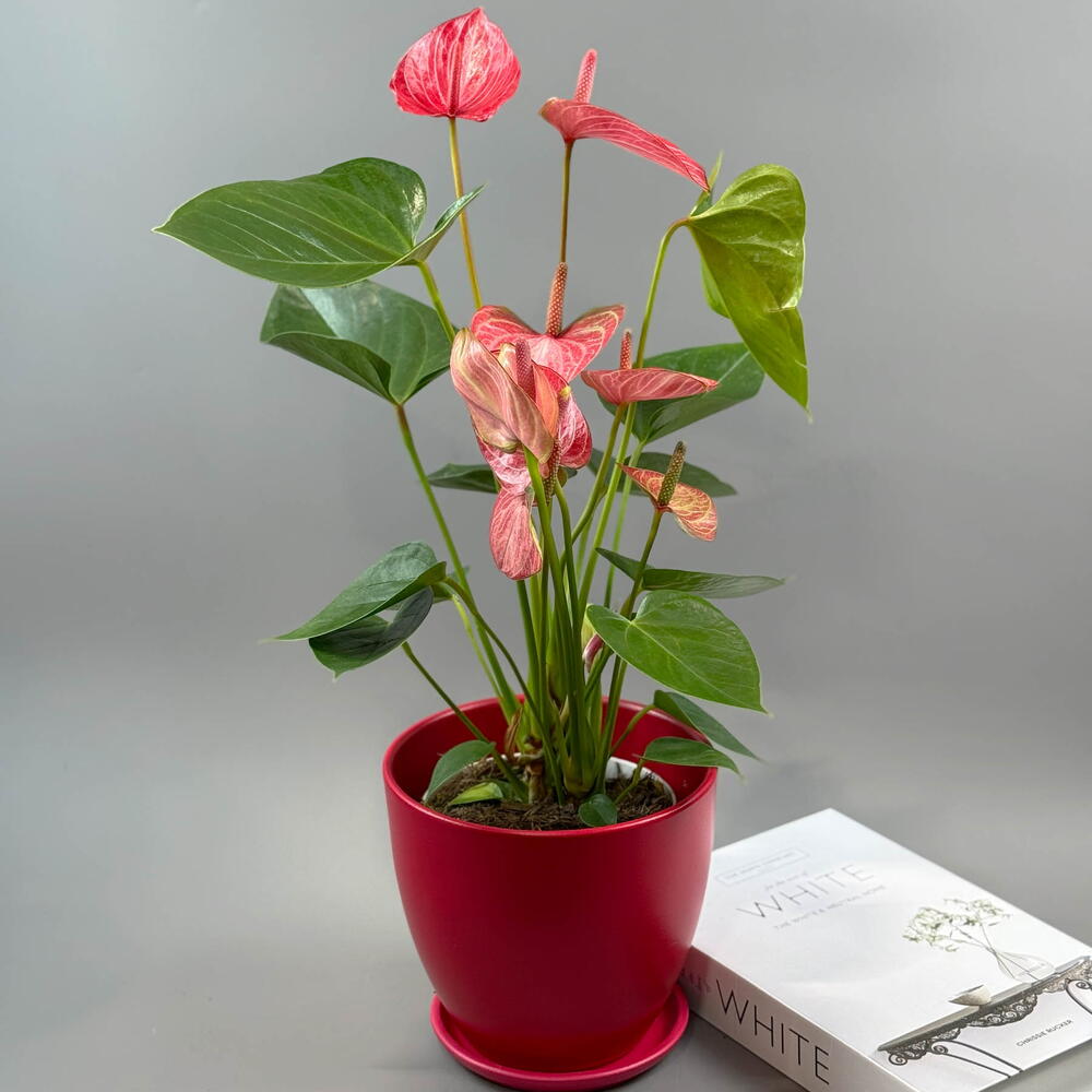 Антуриум андрианум Ливиум (Мужское счастье) в красном горшке