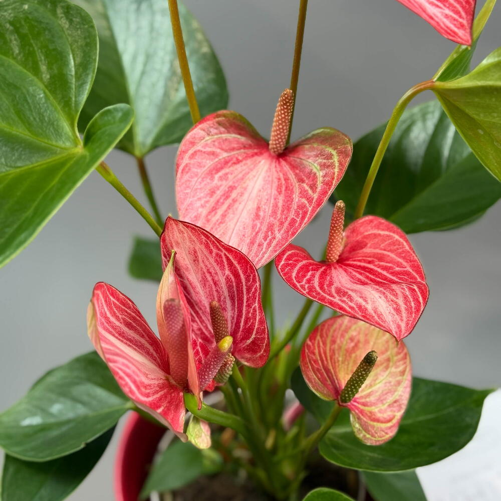 Антуриум Ливиум — изящный сорт с нежно-розовыми покрывалами и светлым початком, который создаёт ощущение лёгкости и свежести. Цвет не кричащий, а деликатный: мягкий розовый оттенок красиво контрастирует с плотными тёмно-зелёными глянцевыми листьями сердцевидной формы. Цветки выглядят аккуратно и «дорого», держатся очень долго и сохраняют декоративность месяцами. Благодаря компактной форме куста растение смотрится опрятно и гармонично как на подоконнике, так и в интерьере гостиной или спальни. Антуриум в народе называют «Мужское счастье». Считается символом любви, силы, гармонии и семейного благополучия. Розовые сорта ассоциируются с нежностью, заботой и искренними чувствами.