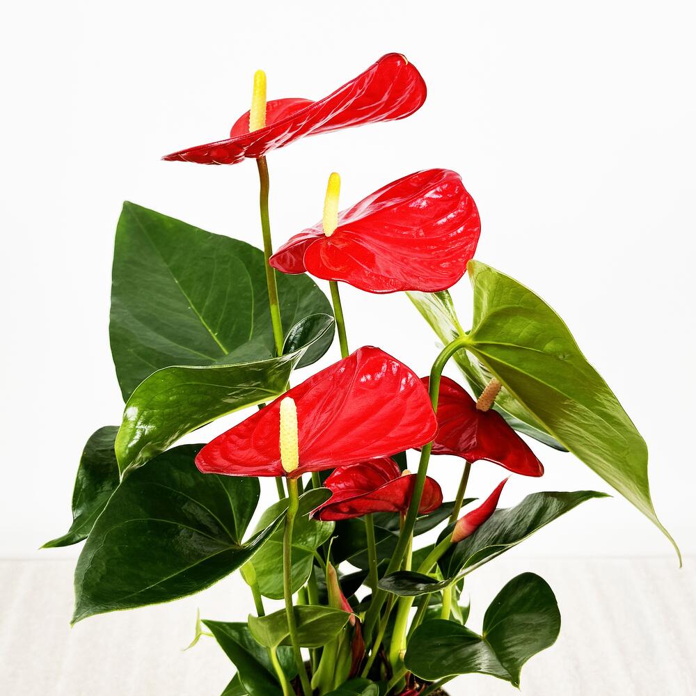 Антуриум красный в кремовом кашпо с автополивом, высота 45-50 см, на 8 марта