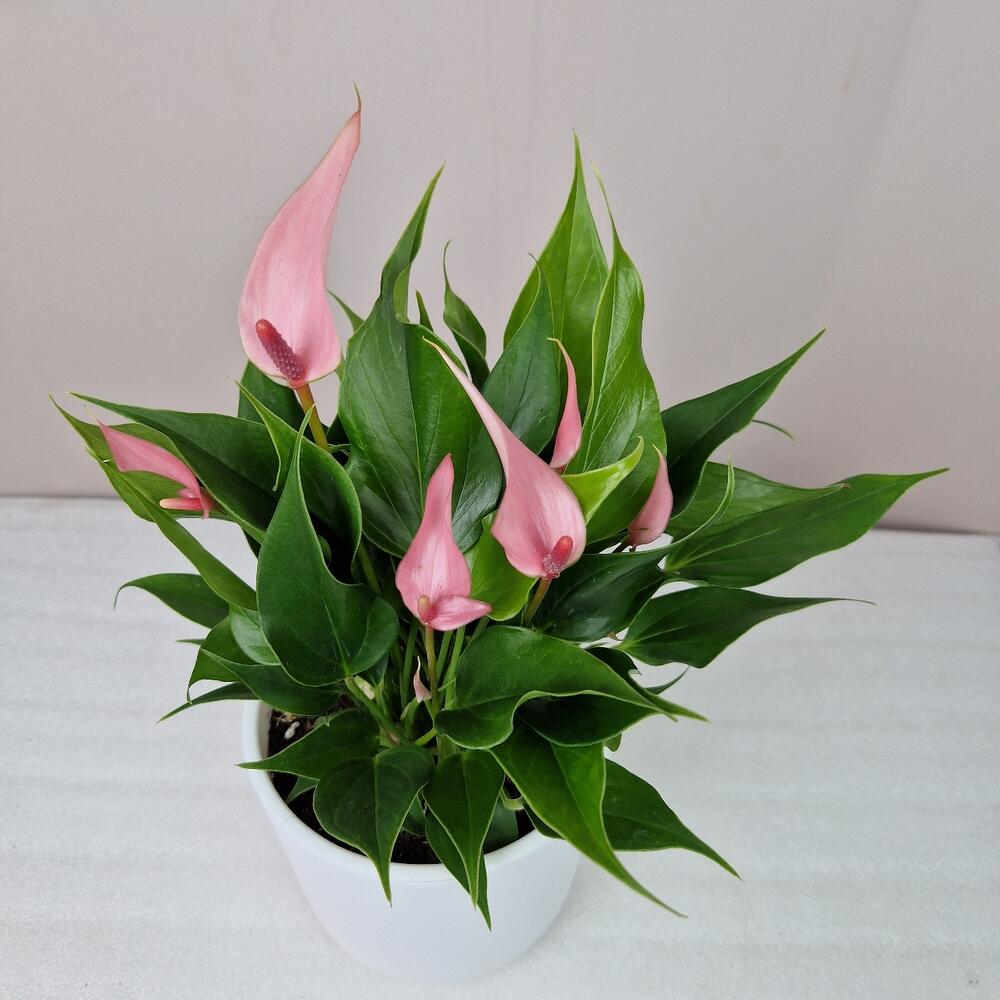Антуриум Лили розовый в белом горшке