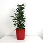 Фикус Бенджамина Даниэль в красном кашпо с АВТОПОЛИВОМ, высота 60-65см