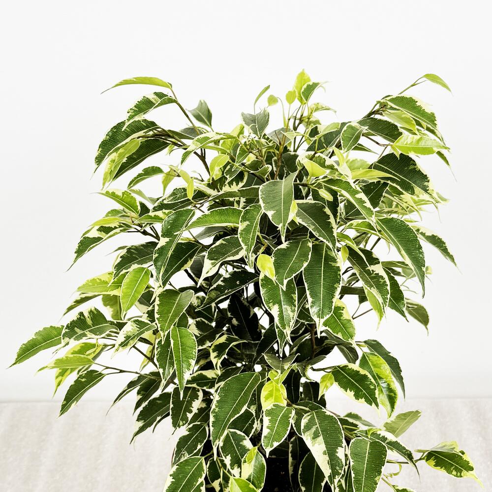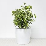 Фикус Бенджамина Кинки в белом кашпо с АВТОПОЛТВОМ, высота 35-40 см, на 8 марта