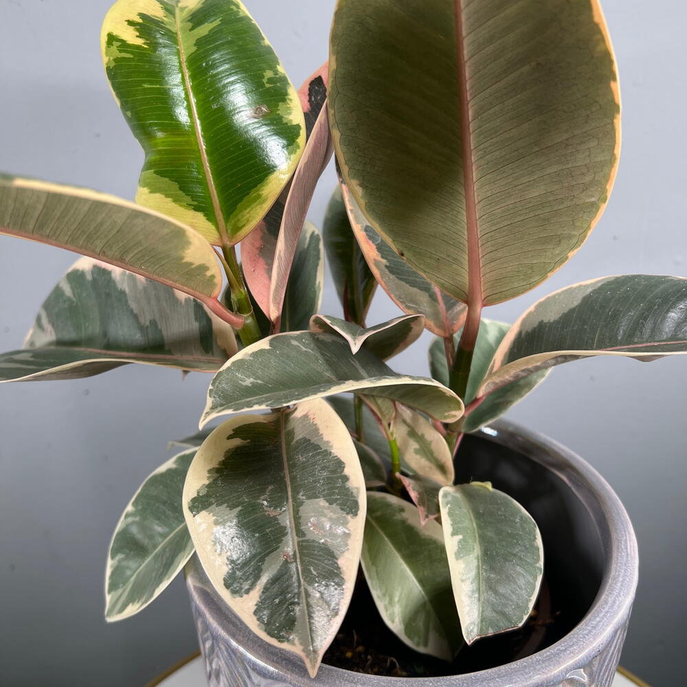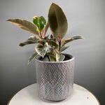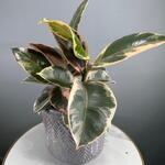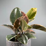 Фикус эластика вариегатный — живой шедевр с характером Роскошный фикус с крупными глянцевыми листьями, украшенными изысканной игрой красок. Нежные кремовые и светло-зеленые разводы на темно-изумрудном фоне создают эффект мраморной текстуры. Каждый лист уникален, превращая растение в эксклюзивный элемент декора. Особенности ухода Для сохранения яркой окрасы требует яркого рассеянного освещения. Полив умеренный после просыхания верхнего слоя грунта. Подкормки в вегетационный период 2 раза в месяц. Формирующая обрезка для поддержания аккуратной формы. Чувствителен к сквознякам и резким перепадам температур. Идеальный выбор для создания акцента в современном интерьере. Строгие линии и благородная пестролистность добавляют пространству стиля и световой динамики. Статное растение с выразительной внешностью, способное преобразить атмосферу любого помещения.
