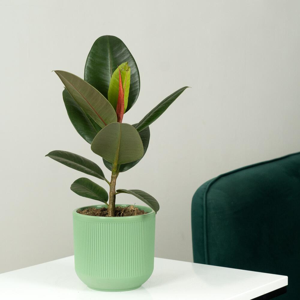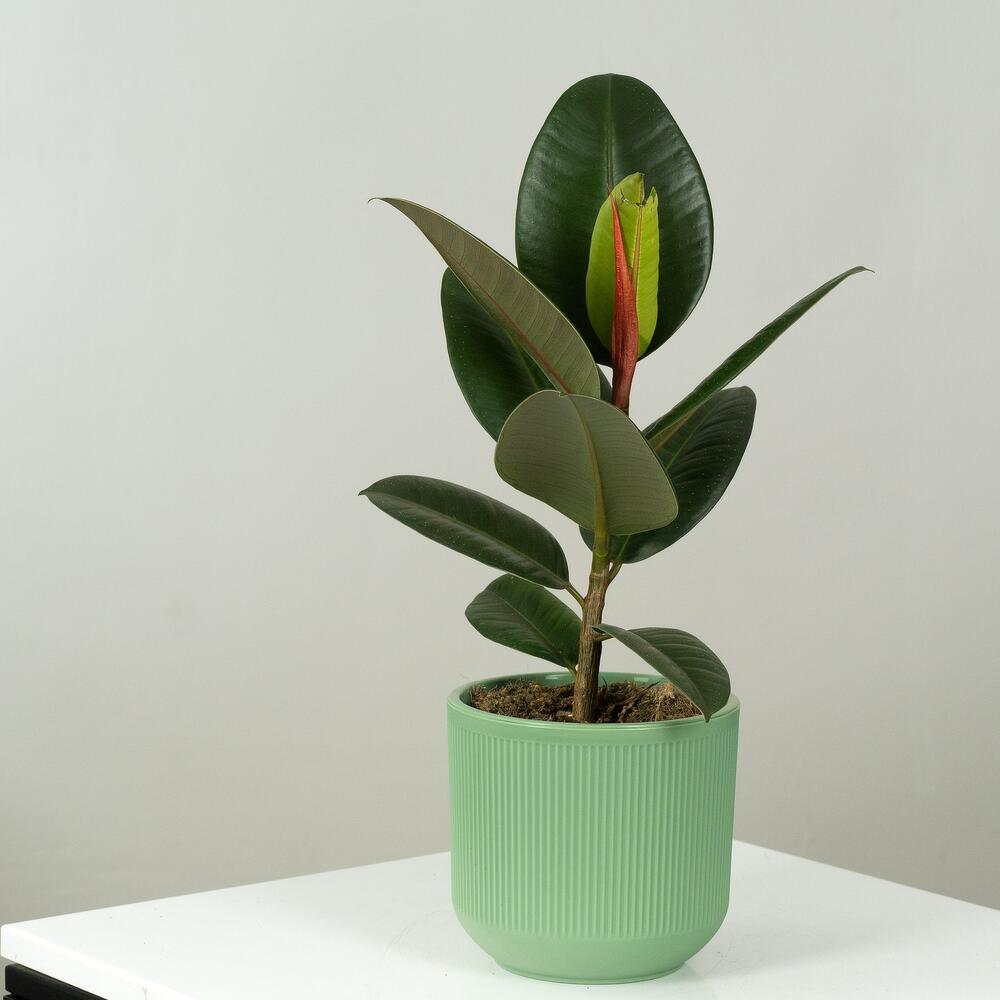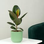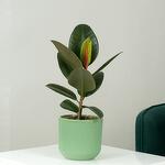 Фикус комнатный , фикус эластика в стильном зеленом кашпо